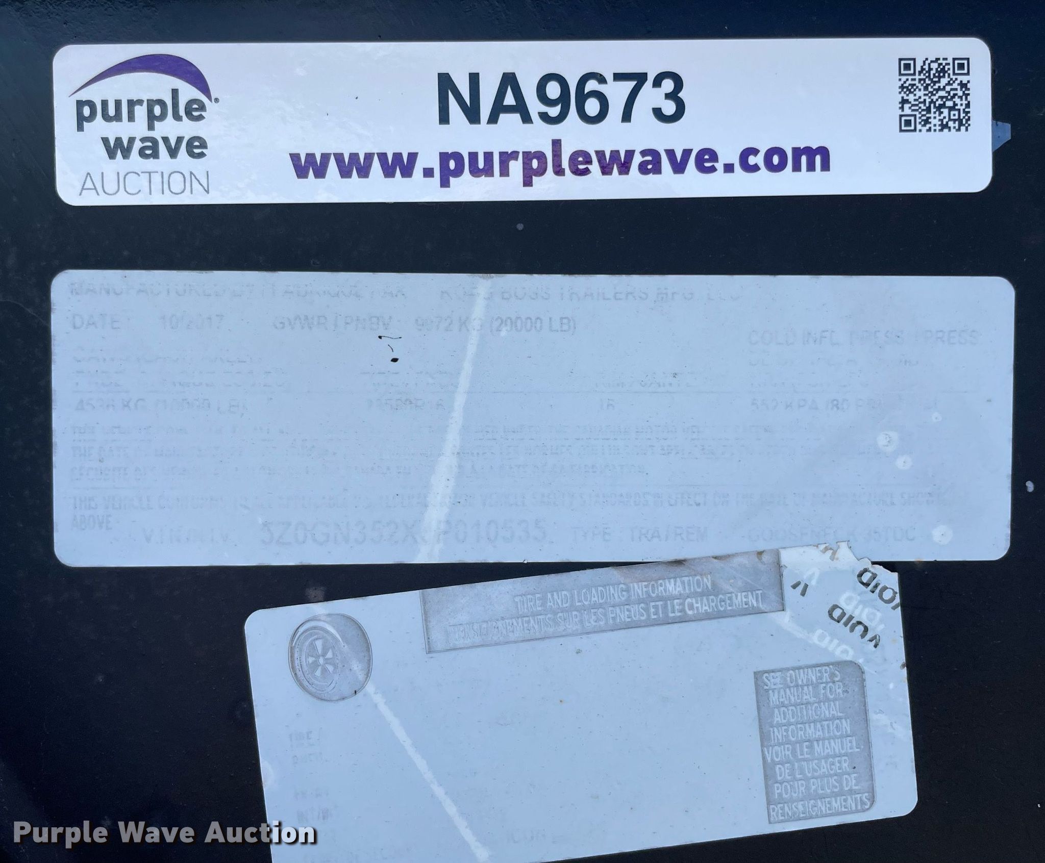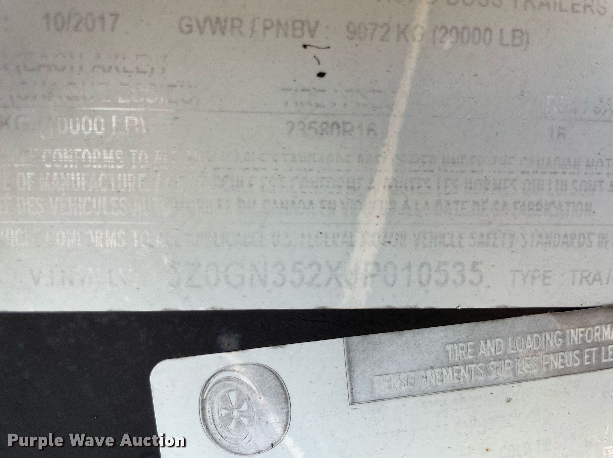 Purple Wave is selling a used Equip. Trailer in Oklahoma. This item is a 2018 Road Boss Trailers equipment trailer with the following: VIN: 5Z0GN352XJP010535