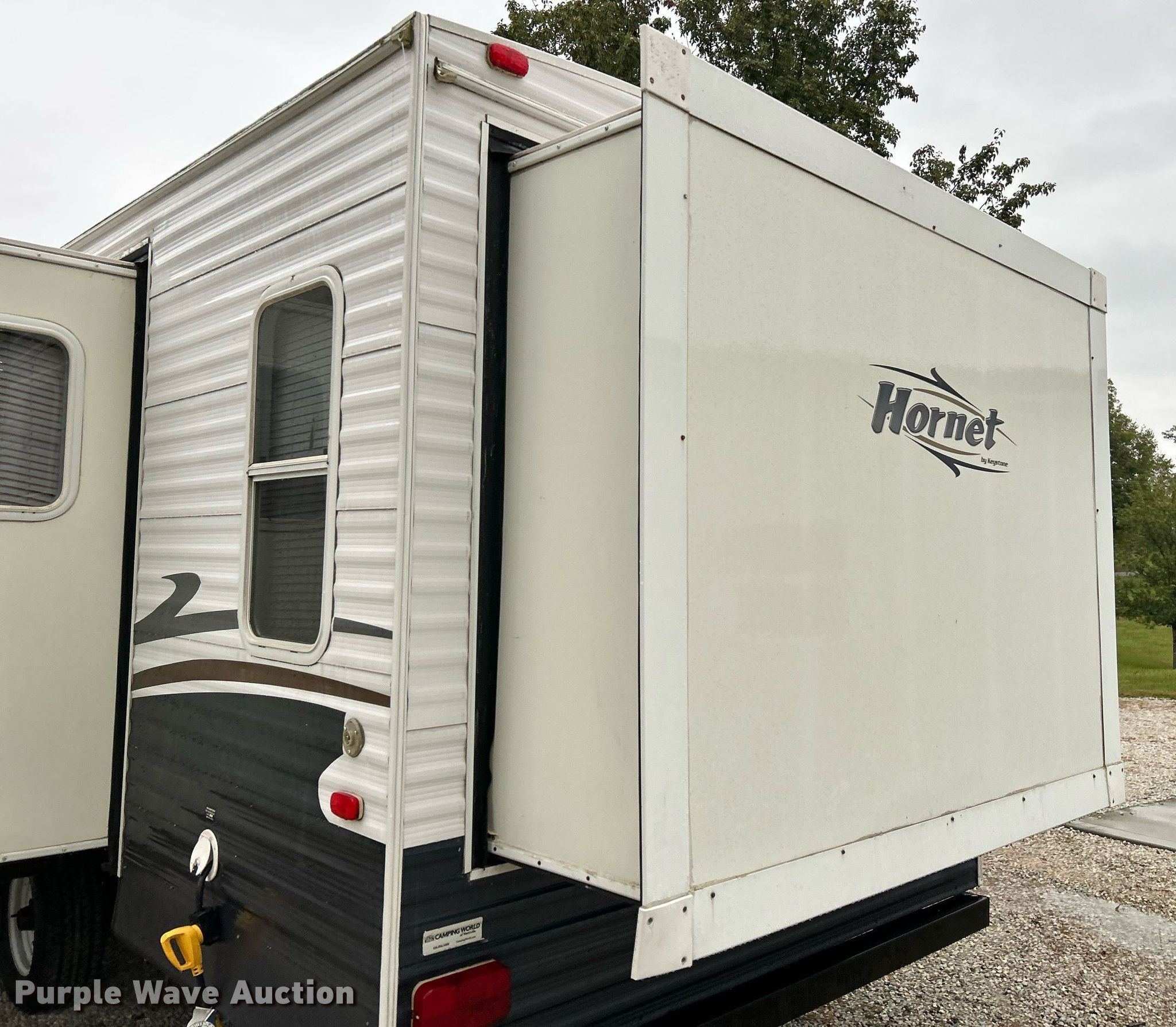 2007 Keystone Hornet. Camper length: 28', VIN: 4YDT28B2177202266. Chassis Axles: Tandem, Suspension: Spring, Brakes: Electric, GVWR: 10,000 lbs, GAWR: 5,080 lbs. Interior Kitchen: Sink, refrigerator, freezer, microwave, oven, Stove: Propane, Living room: Table, pull out couch, Bathroom, Beds: 3, TVs: 1, Satellite, Heater, AC units: 1. Features Slide outs: 2, Awnings: 1 Awning type: Manual. Tires Size: 225/75R15. Missouri title. Title distribution may be delayed up to 14 days from verification of funds. William Brown. Moscow Mills, MO 63362