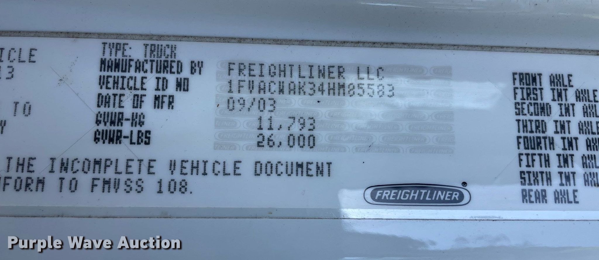 - VIN: 1FVACWAK34HM85583