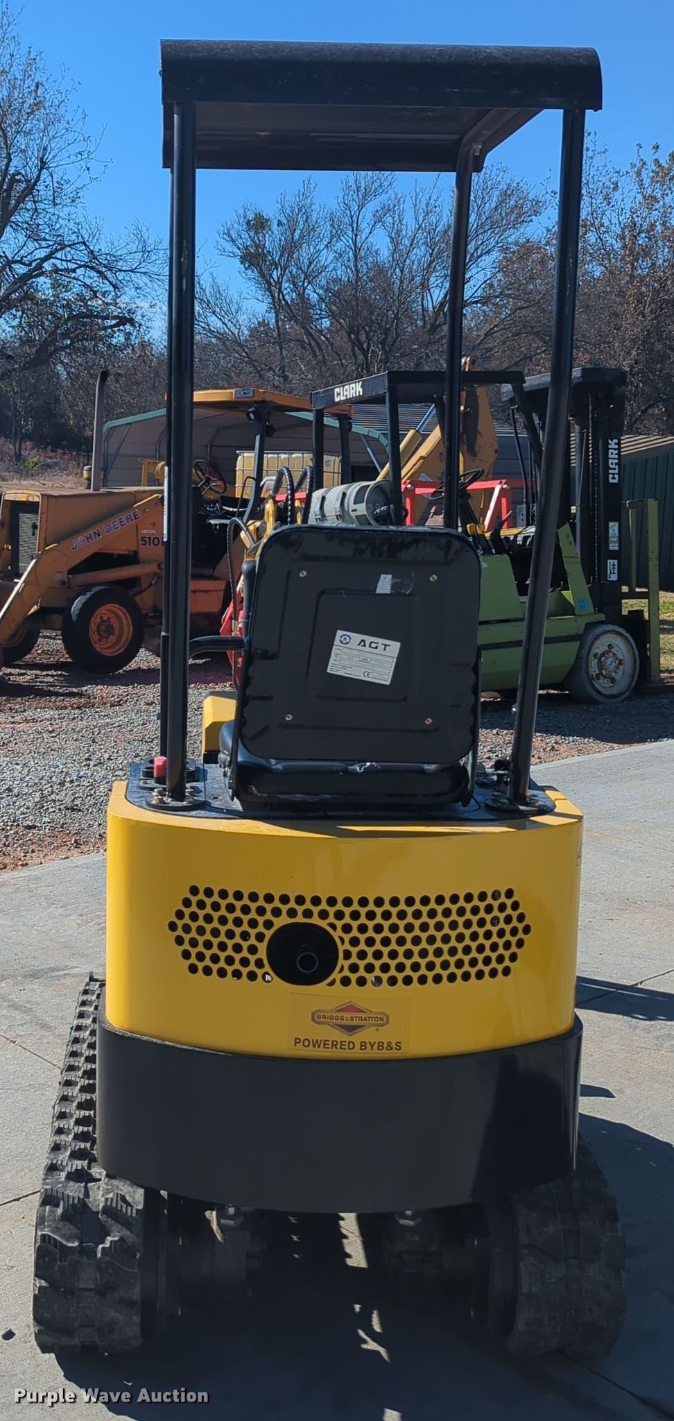 2023 AGT QH12 mini excavator. Hours: 0.3 on meter, Serial: QH1223071101D. Engine Briggs & Stratton, Cylinders: 1, Fuel type: Gas. Transmission Hydrostatic. Features Backfill blade Width: 40", Boom Standard, Stick Stick length: 36", Thumb: Manual, Bucket Width: 16", Cutting edge: Bolt-on, Teeth: 3. Tracks Width: 7", Rubber. Notes Unused. 17100 S Air Depot Blvd. Norman, OK 73026