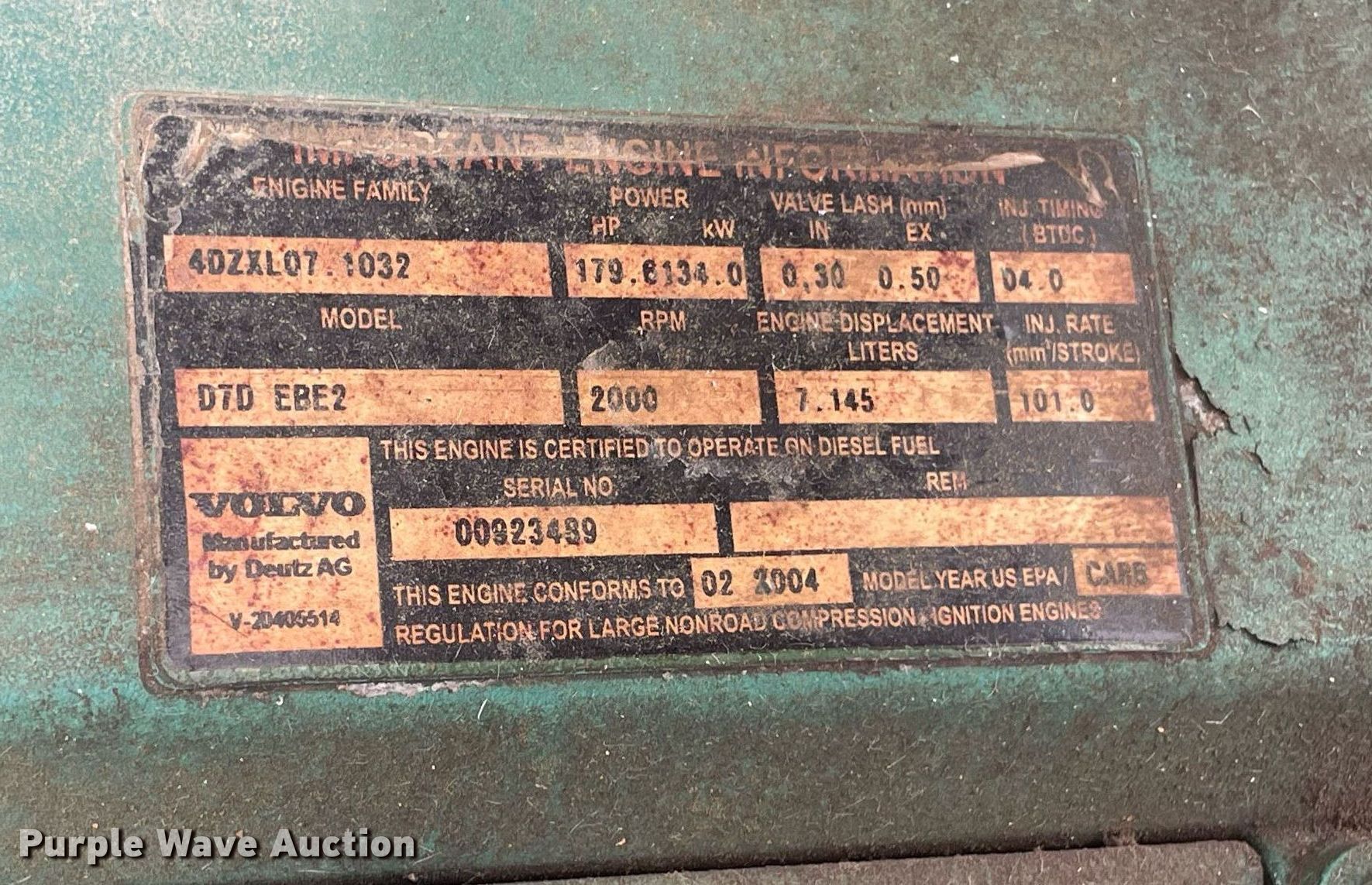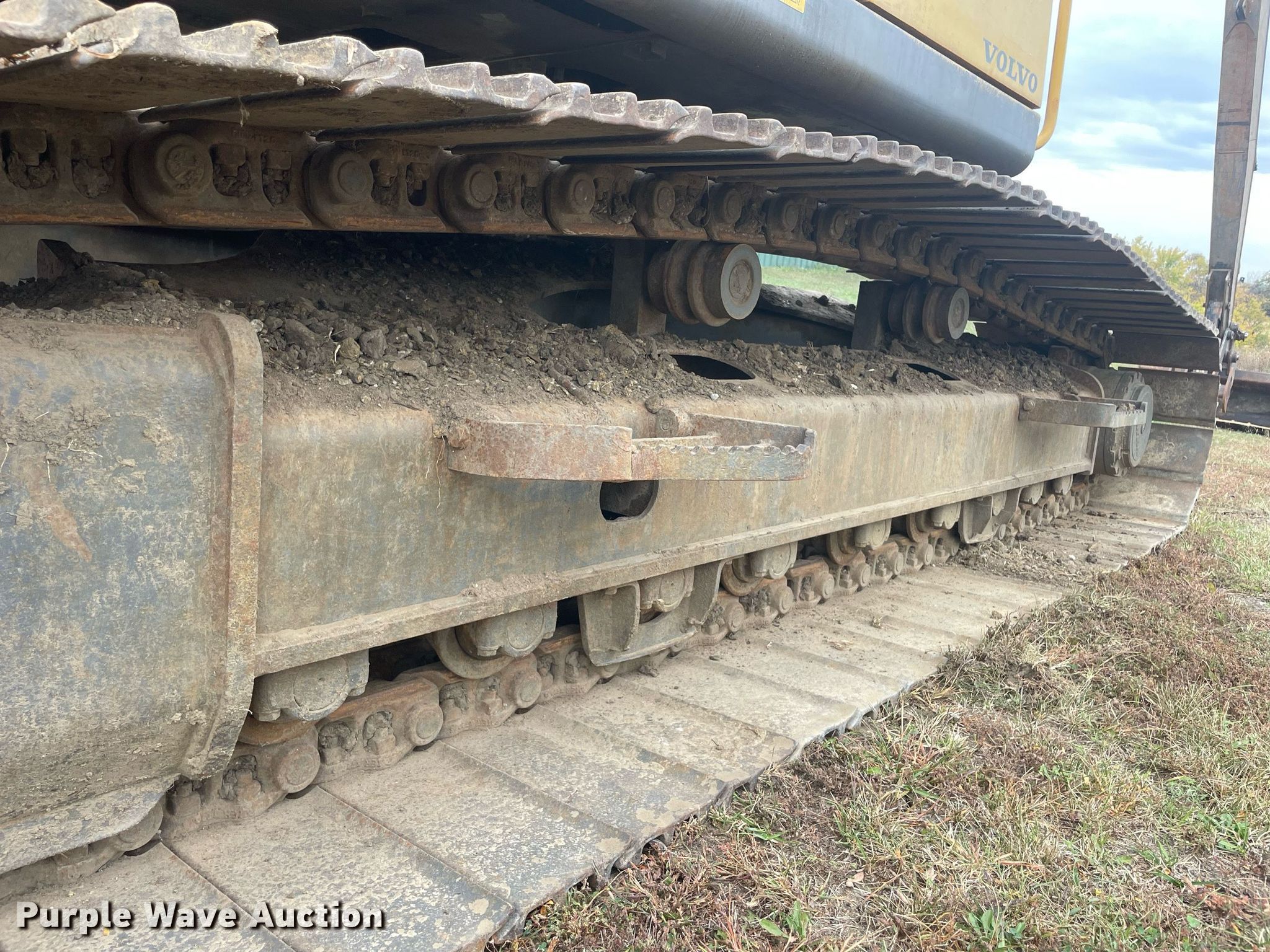 2004 Volvo EC240BLC long reach excavator. Hours: 3,761 on meter, Miles or hours may vary, unit still in use, Serial: EC240V11476. Engine Volvo D7D EBE2, Serial: 00923489, Displacement: 7.145L, Cylinders: 6, Fuel type: Diesel. Transmission Hydrostatic. Operators station Enclosed cab, AC, Heat. Features Boom Standard, Stick Stick length: 25', Long reach, Thumb: Manual, Bucket Width: 60", Cutting edge: Bolt-on. Tracks Width: 36", Steel, Grouser pads: Triple. 6535 NW Pleasant Rd. King City, MO 64463