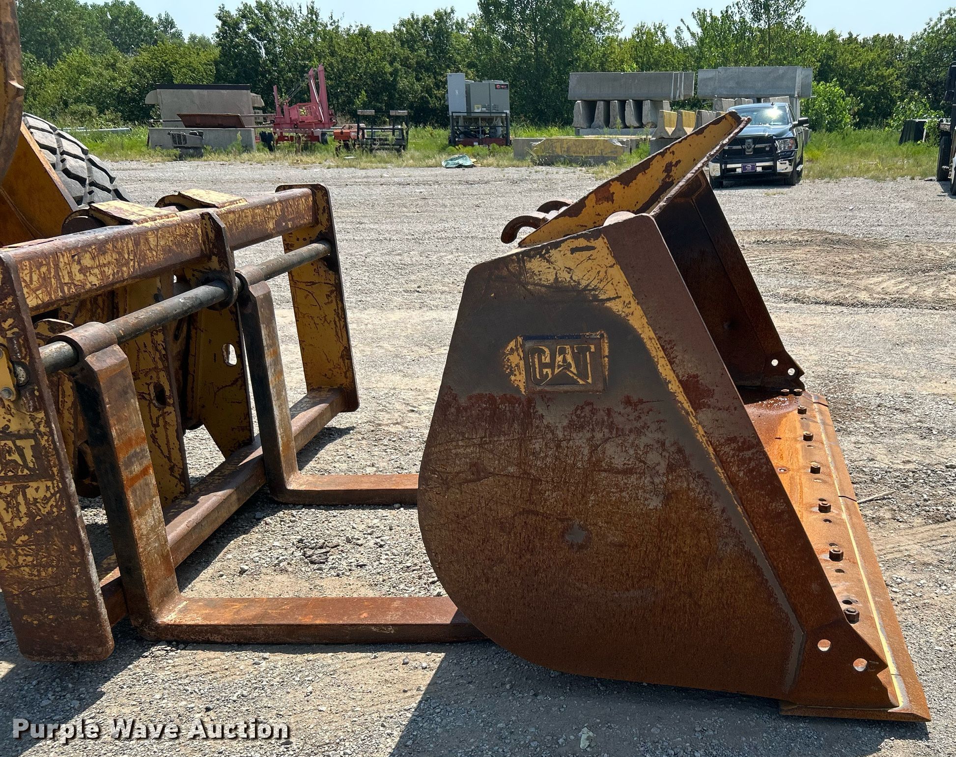 2005 Caterpillar 938G Series 2 wheel loader. Hours: 12,054 on meter, Miles or hours may vary, unit still in use, Serial: CAT0938GLRTB01652, Unit #: 45.28L. Engine Caterpillar 3126, Displacement: 7.2L, Cylinders: 6, Fuel type: Diesel. Transmission Powershift, 4F - 3R. Operators station Enclosed cab, AC, Heat, Bucket controls: Joystick. Features Counter weights, Bucket Caterpillar 5GN0621, Width: 106", Cutting edge: Bolt-on, Forks Length: 56". Tires Size: 20.5R25. Sherwood Construction. 5407 North 145th East Avenue. Owasso, OK 74055