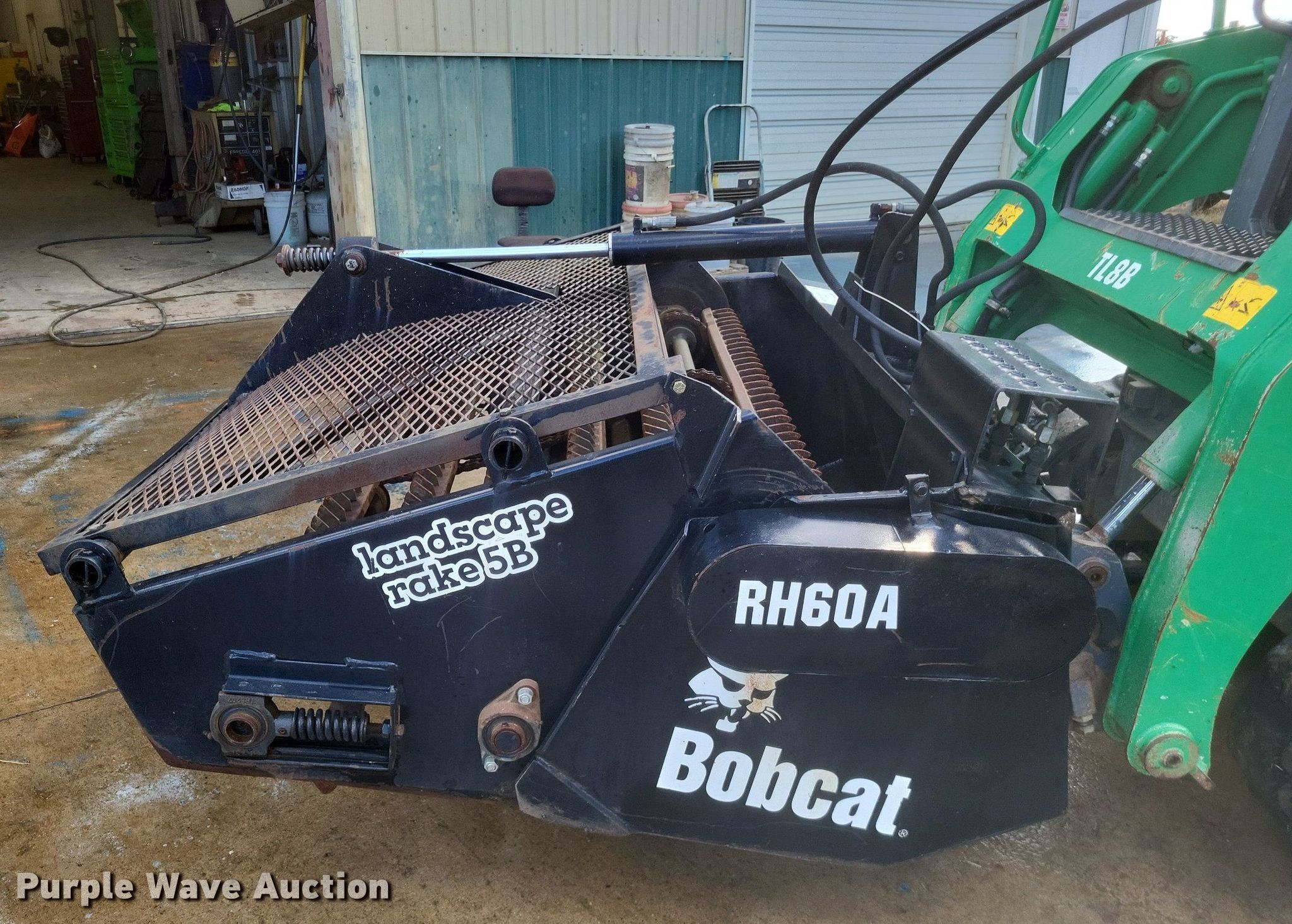 Purple Wave is selling a used Skid Steer Attach. in Kentucky. This item is a Bobcat 58" W skid steer landscape rake with the following: Serial: 4600, Unit #: RH60A