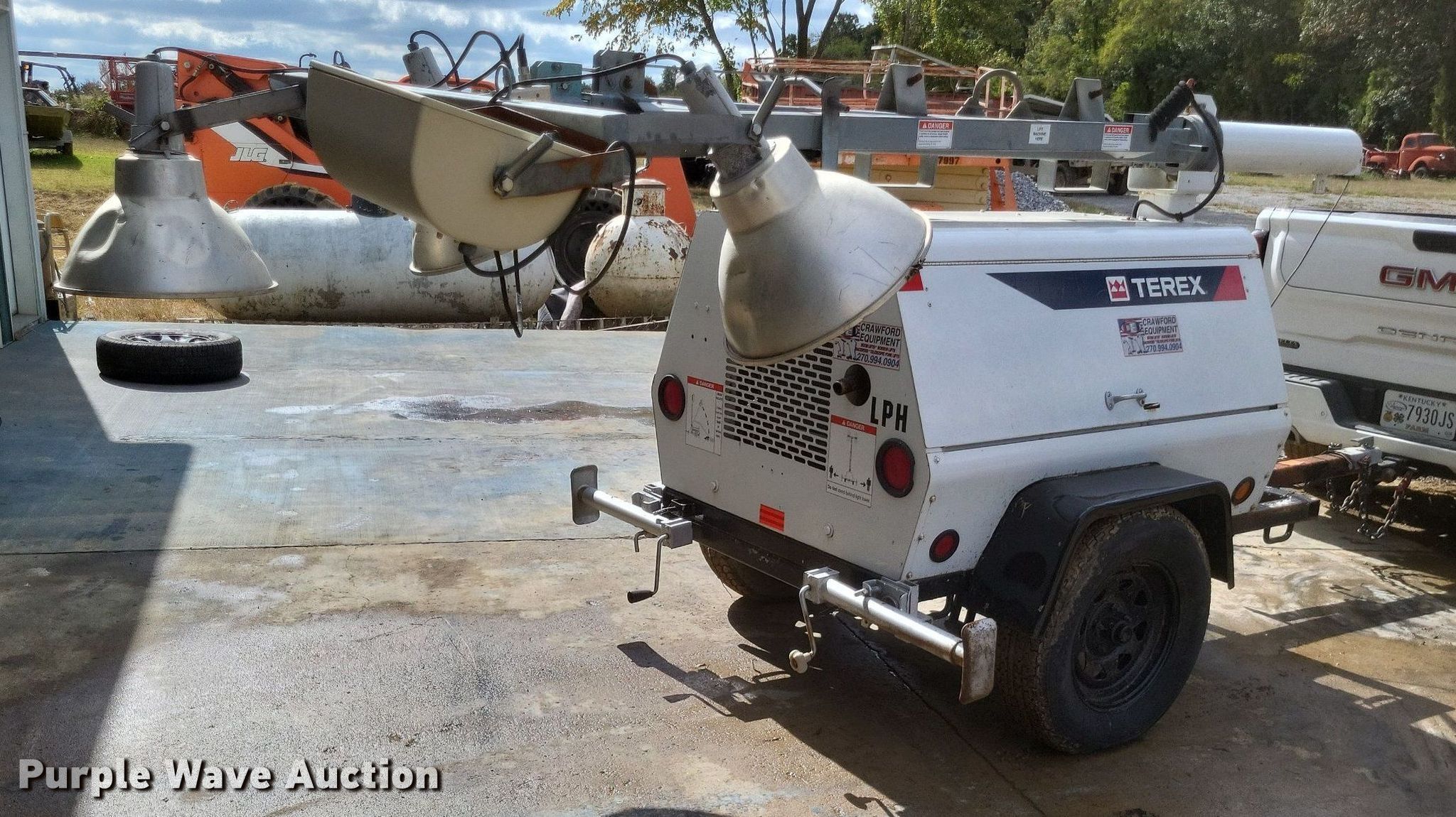 Terex AL4000 light plant. Hours: 9,139 on meter, Serial: AV0383, Unit #: LPH. Engine Kubota, Cylinders: 3, Fuel type: Diesel. Features Generator Pancake 21085411, Phase: Single, Light plant Bulbs: 4, Hoist: Manual, Stabilizers, Electric start. Trailer 10' L x 61" W, Ball hitch size: 2", Suspension: Spring, Axles: Single, Tire size: 205/75D15. Transfer of ownership documentation will be a bill of sale. Crawford Equipment, Inc... 232 Carter Rd. Mayfield, KY 42066