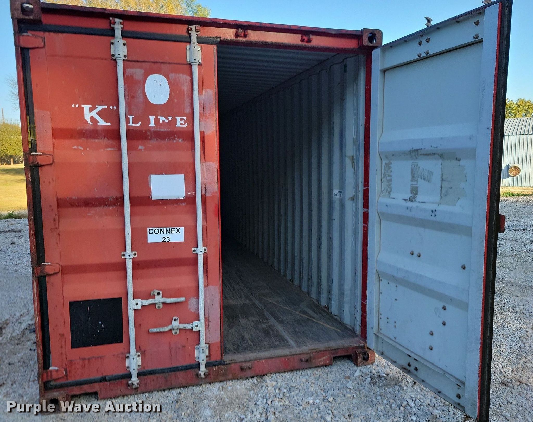 This 2000 Kline shipping container will sell to the highest bidder regardless of price.