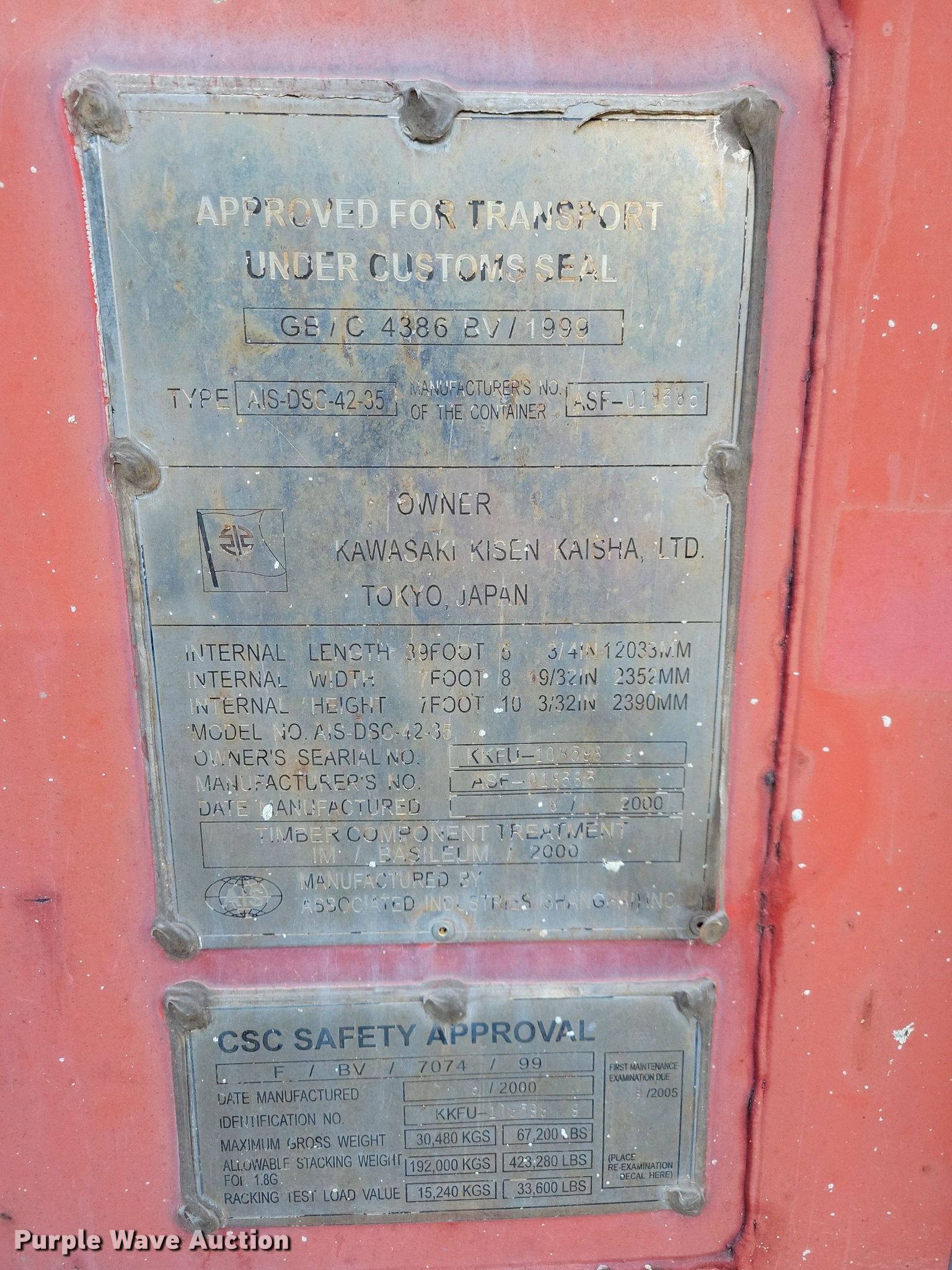 Purple Wave is selling a used Storage or Shipping Container in Iowa. This item is a 2000 Kline shipping container with the following: 40' x 8'6" x 96"