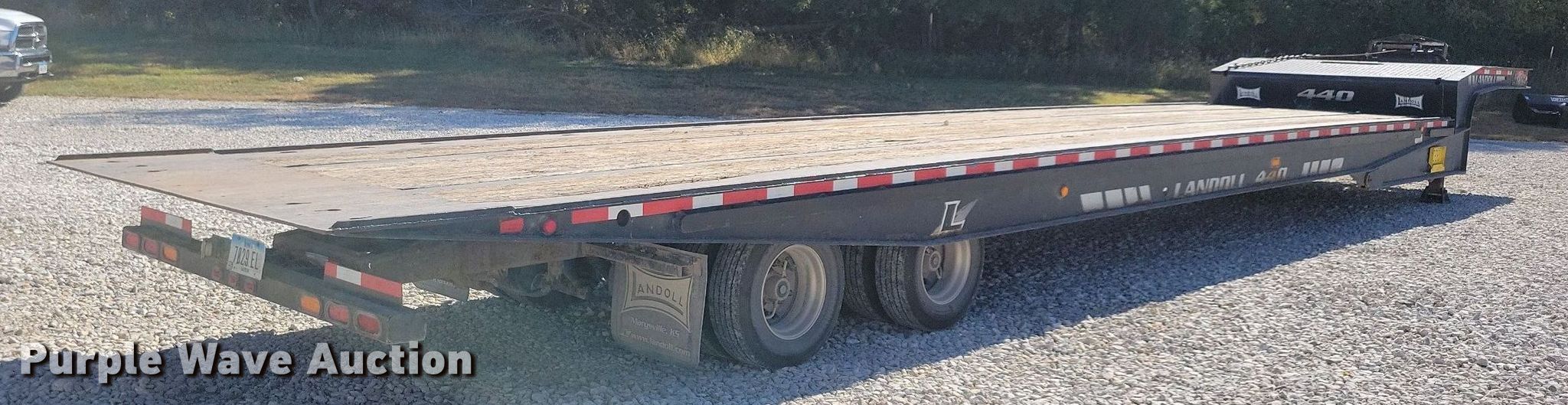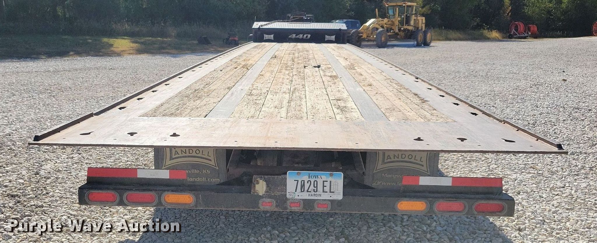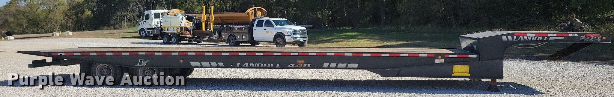 2015 Landoll 440 tilt deck equipment trailer. VIN: 1LH440VH7F1022115. Dimensions Overall: 50' L x 102" W, Deck: 40' L x 102" W, Top deck length: 7', Deck height: 39". Features Deck type: Wood, Winch Braden AMU7-14, Capacity: 24,000 lbs, Hydraulic controls: Manual. Chassis Landing gear: Dual, Suspension: Air, Brakes: Air, Axles: Tandem, GVWR: 97,100 lbs, GAWR: 21,420 lbs. Tires Aluminum wheels, Size: 235/75R17.5. Notes Contents not included. Iowa title. Title has a lien that will be released following the close of the auction. Title distribution may be delayed up to 30 days from verification of funds. Pursuant to Iowa law, Purple Wave will not be collecting sales taxes on any of the purchases made in this business liquidation auction. Zoske Electrical Services Retirement-Open inspection November 15. 124 Country Club Road. Iowa Falls, IA 50126