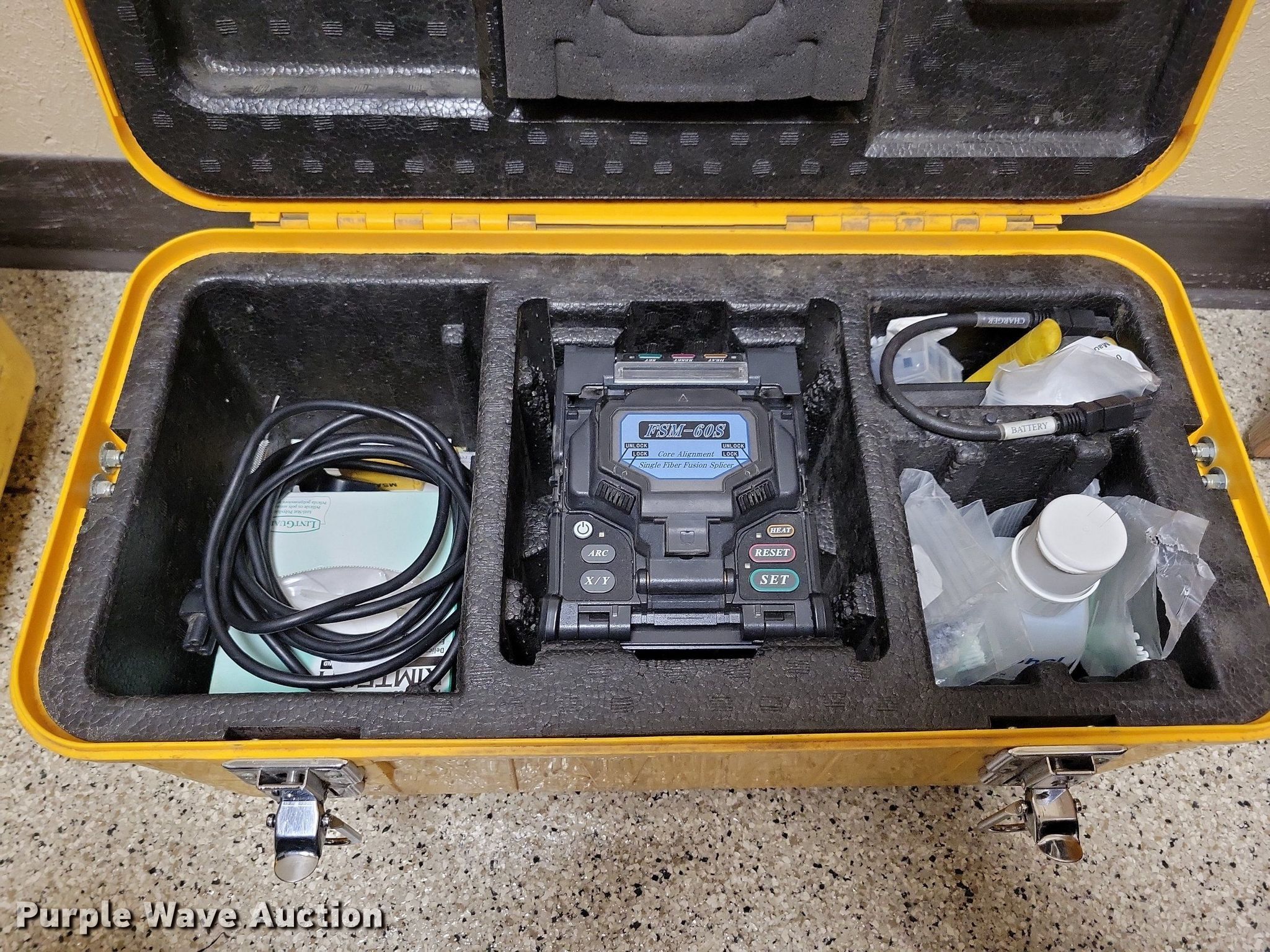 2008 Carry-On Cargo fiber optic trailer. VIN: 4YMCL16258M009815. Dimensions Overall: 21' L x 102" W, Body: 19' L x 83" W, Rear door / ramp 71" L x 74" W. Features Deck type: Wood, AC unit. Chassis Ball hitch: 2 5/16", Landing gear: Single, Brakes: Electric, Axles: Tandem. Features Noyes M600 optical time domain reflectometer, Fujikura FSM-60S fiber fusion splicer Serial: 09924, Fujikura FSM-50S fiber fusion splicer Serial: 03466, Fluke DSX-8000 cableanalyzer Remote. Tires Steel wheels, Size: ST205/75R15. Notes Contents included. Iowa title. Title distribution may be delayed up to 14 days from verification of funds. Pursuant to Iowa law, Purple Wave will not be collecting sales taxes on any of the purchases made in this business liquidation auction. Zoske Electrical Services Retirement-Open inspection November 15. 124 Country Club Road. Iowa Falls, IA 50126