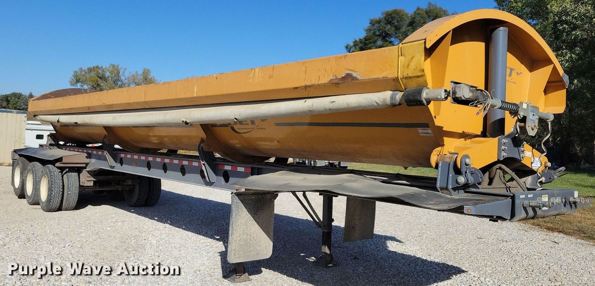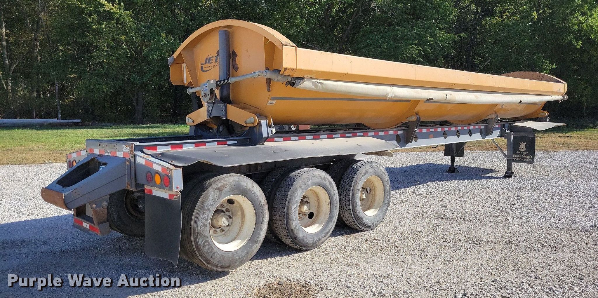 2013 Jet Company 45 side dump trailer. VIN: 5JNSS4531DH000088. Dimensions Overall: 46' 6" L x 102" W, Body: 36' L x 102" W, Side height: 36". Features Body type: Steel, Ram: Dual, Rear push block, Roll tarp. Chassis Landing gear: Dual, Suspension: Air, Brakes: Air, Axles: Triple, GVWR: 80,000 lbs, GAWR: 25,000 lbs. Tires Steel wheels, Size: 11R22.5. Notes Truck not included. Iowa title. Title has a lien that will be released following the close of the auction. Title distribution may be delayed up to 30 days from verification of funds. Pursuant to Iowa law, Purple Wave will not be collecting sales taxes on any of the purchases made in this business liquidation auction. Zoske Electrical Services Retirement-Open inspection November 15. 124 Country Club Road. Iowa Falls, IA 50126
