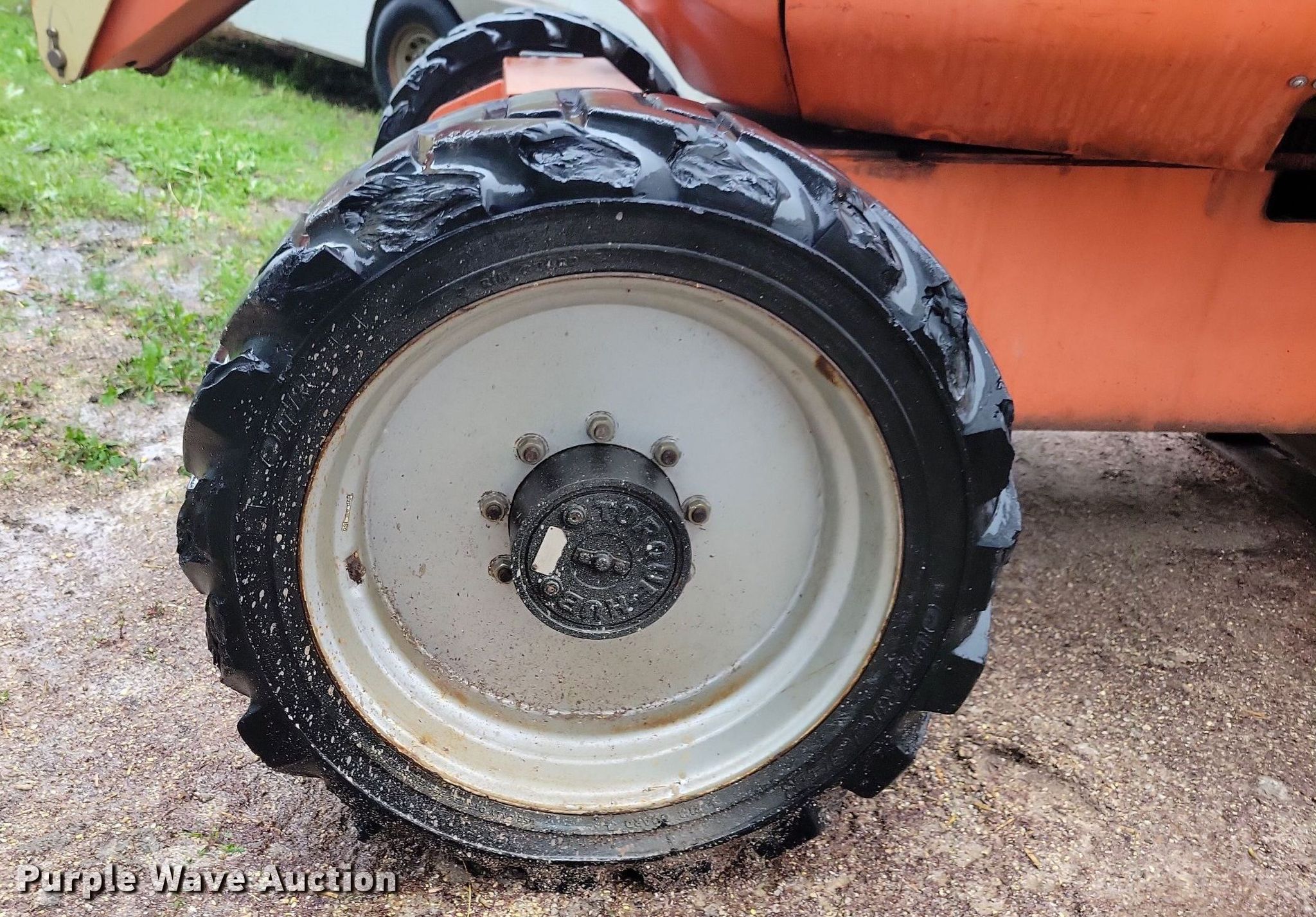 2006 JLG 600A boom lift. Hours: 3,411 on meter, Miles or hours may vary, unit still in use, Serial: 300095047. Engine Deutz F4M2011, Serial: 10115154, Displacement: 3.1L, Cylinders: 4, Fuel type: Diesel, HP: 65, kW: 48.5. Features Rough terrain, Maximum lift capacity: 1,000 lbs, Maximum reach length: 39' 6", Maximum lift height: 60', Platform: 96" L x 36" W, AC power outlet, Controls: Platform, Ground, Platform rotation: Hydraulic. Tires Tire size: 355/55D625NHS, Foam filled. Pursuant to Iowa law, Purple Wave will not be collecting sales taxes on any of the purchases made in this business liquidation auction. Zoske Electrical Services Retirement-Open inspection November 15. 124 Country Club Road. Iowa Falls, IA 50126