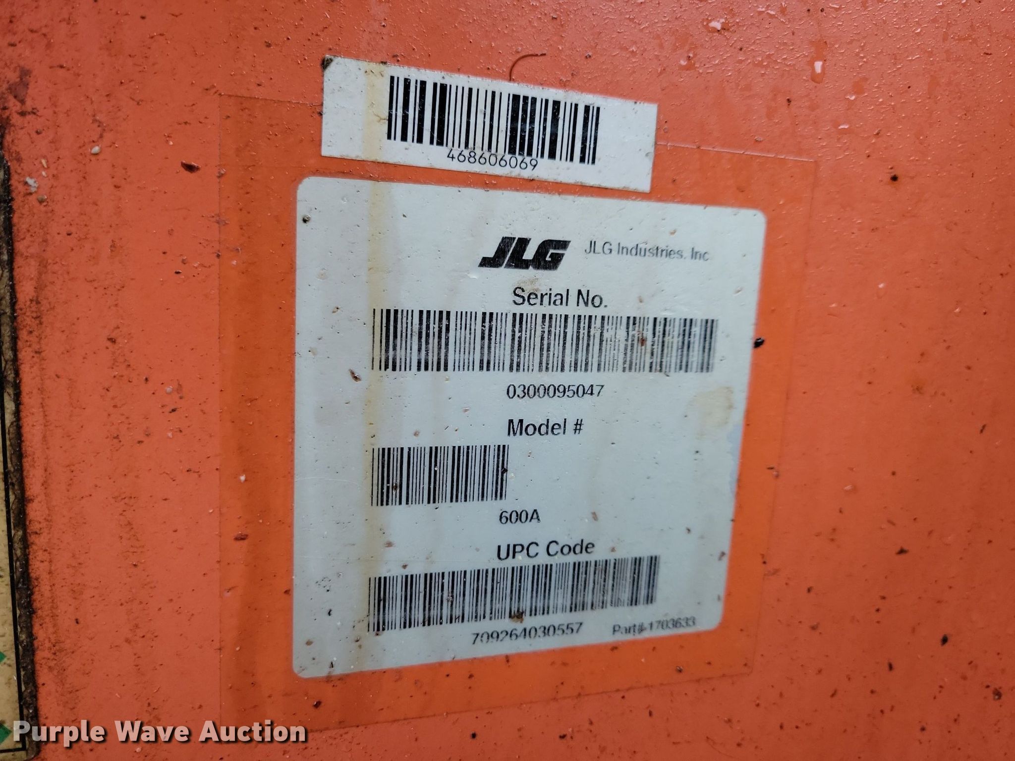 Purple Wave is selling a used Boom Lift in Iowa. This item is a 2006 JLG 600A boom lift with the following: Hours: 3,411 on meter, Miles or hours may vary, unit still in use, Serial: 300095047