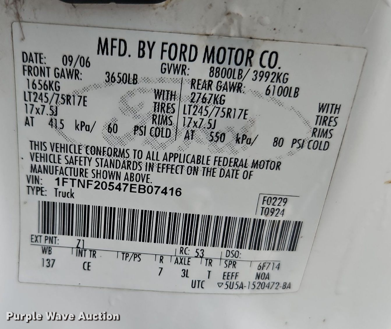 Purple Wave is selling a used 3/4 or 1 Ton Pickup or Van in Kansas. This item is a 2007 Ford F250 Super Duty XL pickup truck with the following: Miles: 178,533 on odometer, Hours: 10,000 on meter, VIN: 1FTNF20547EB07416, Unit #: 140