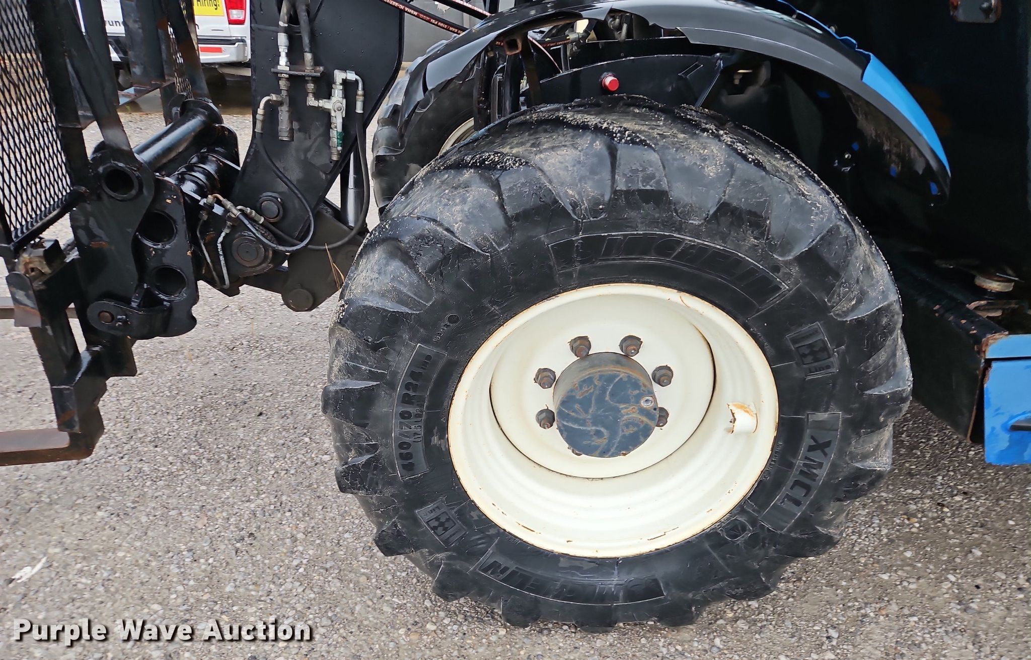 New Holland telehandler. Hours: 4,159 on meter, Serial: Z7KA30154. Engine Cylinders: 4, Fuel type: Diesel. Transmission Powershift, 4F - 4R, Four wheel drive. Operators station Enclosed cab, AC, Heat. Features Boom stages: 2, Fork length: 60", Auxiliary hydraulics, Quick attach: Hydraulic. Tires Size: 460/70R24. Notes Glass cracked, Dead battery, Possible Hydraulic issues, Non-operationalrear steering. K&W Underground Inc.. 15608 S Keeler Terrace. Olathe, KS 66062