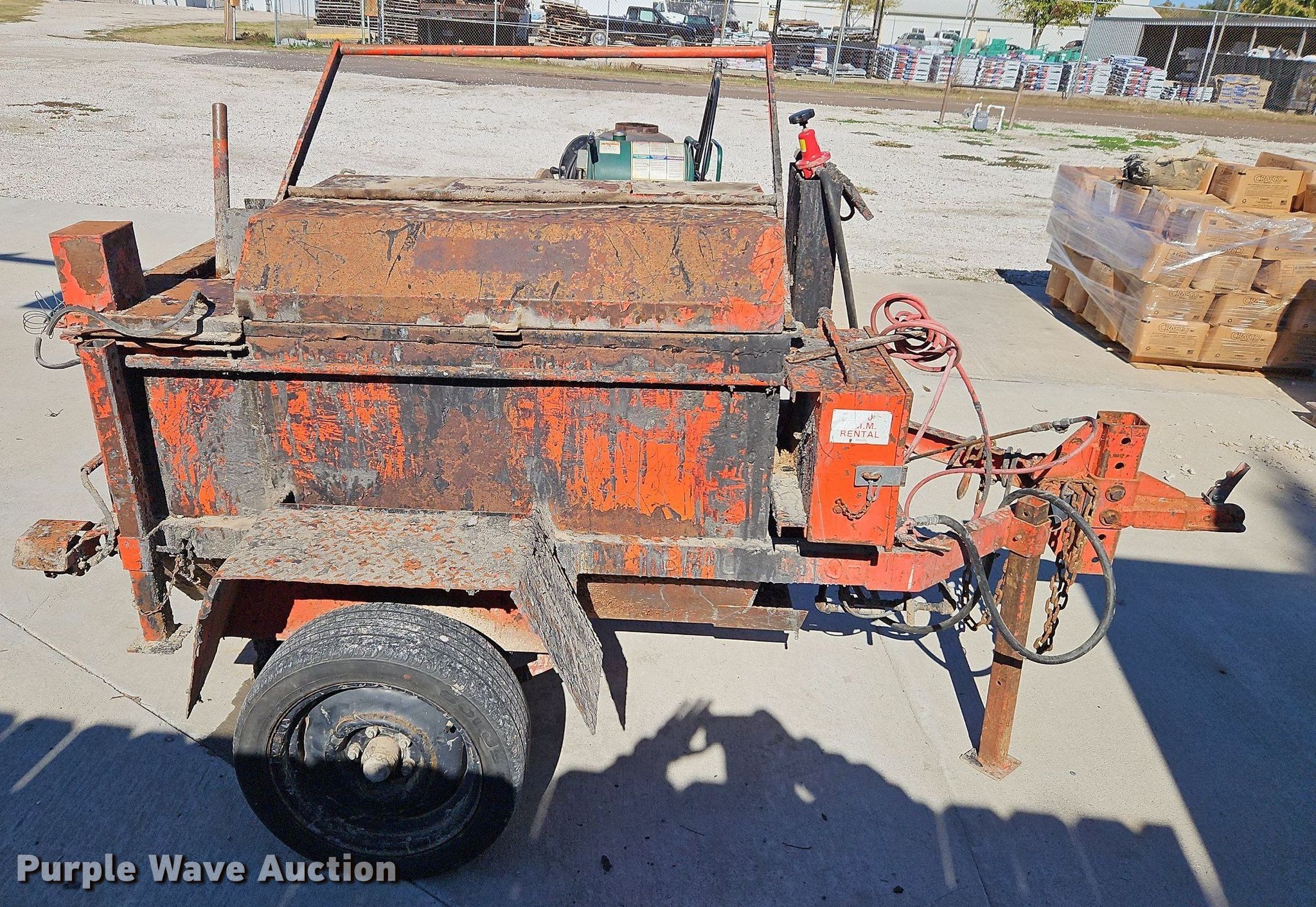 Purple Wave is selling a used Pot Hole Patcher in Kansas. This item is a Oil kettle with the following: 9' L x 5' W, Propane fired burner, Single burner, Ball hitch: 2", Tire size: 6.00-15