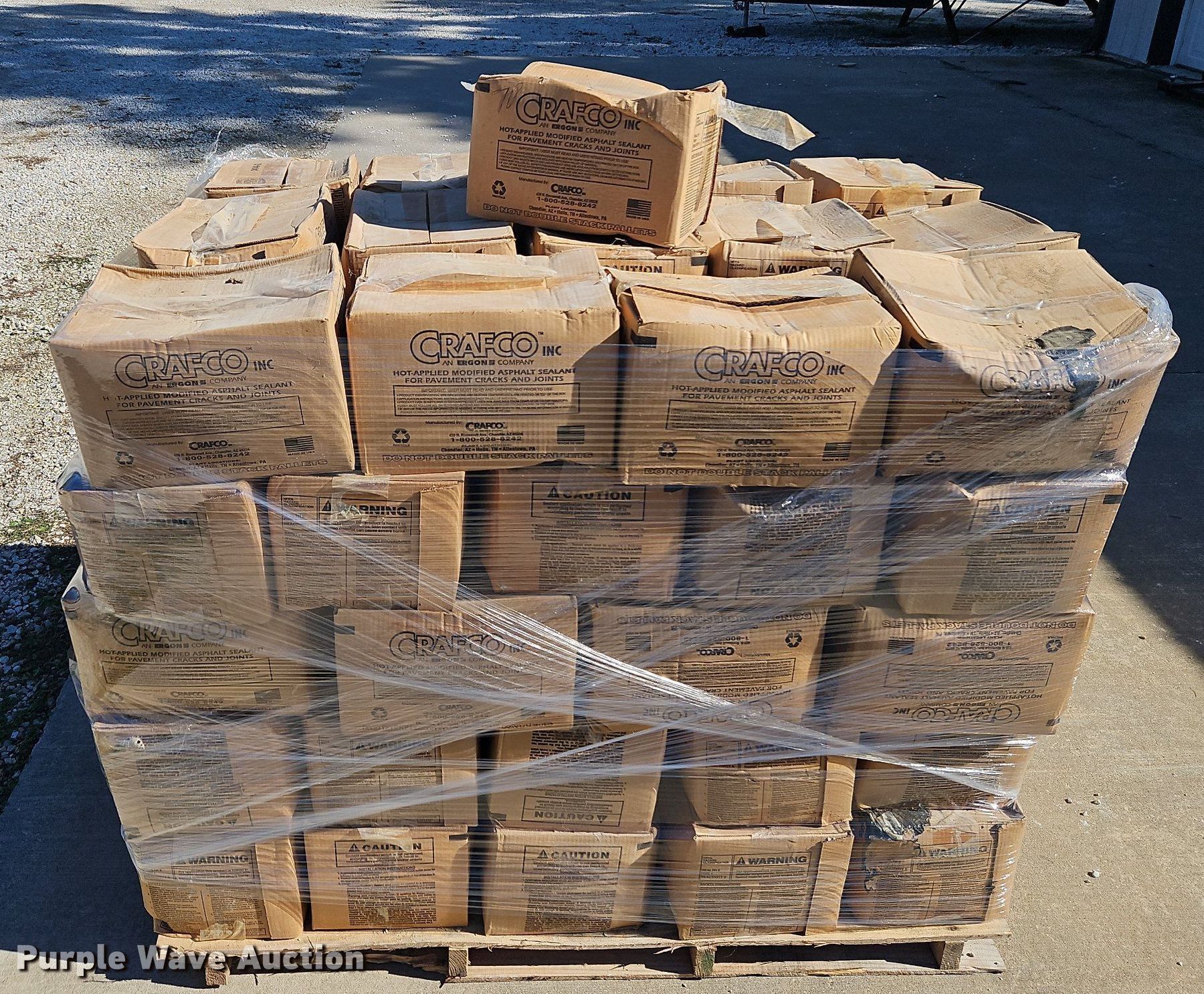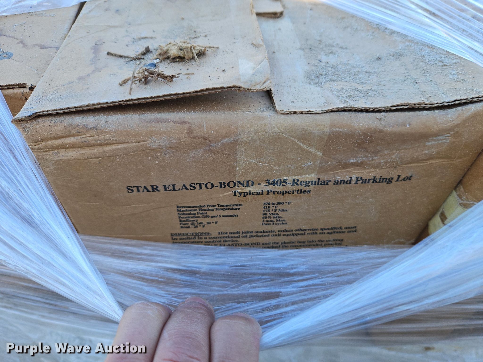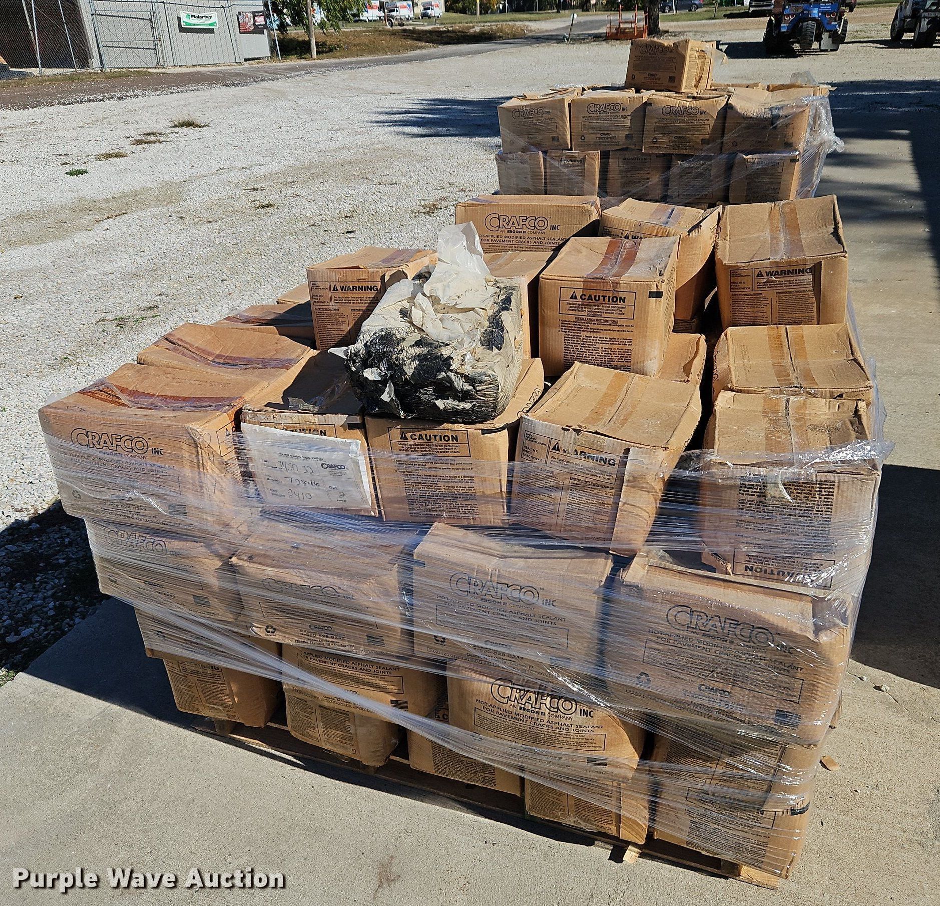 Purple Wave is selling a used Paving Sply. or Attach. in Kansas. This item is a Asphalt sealants with the following: (140) boxes Crafco hot applied modified sealant, (120) boxes Star Elasto-Bond 3405 hot melt joint sealant