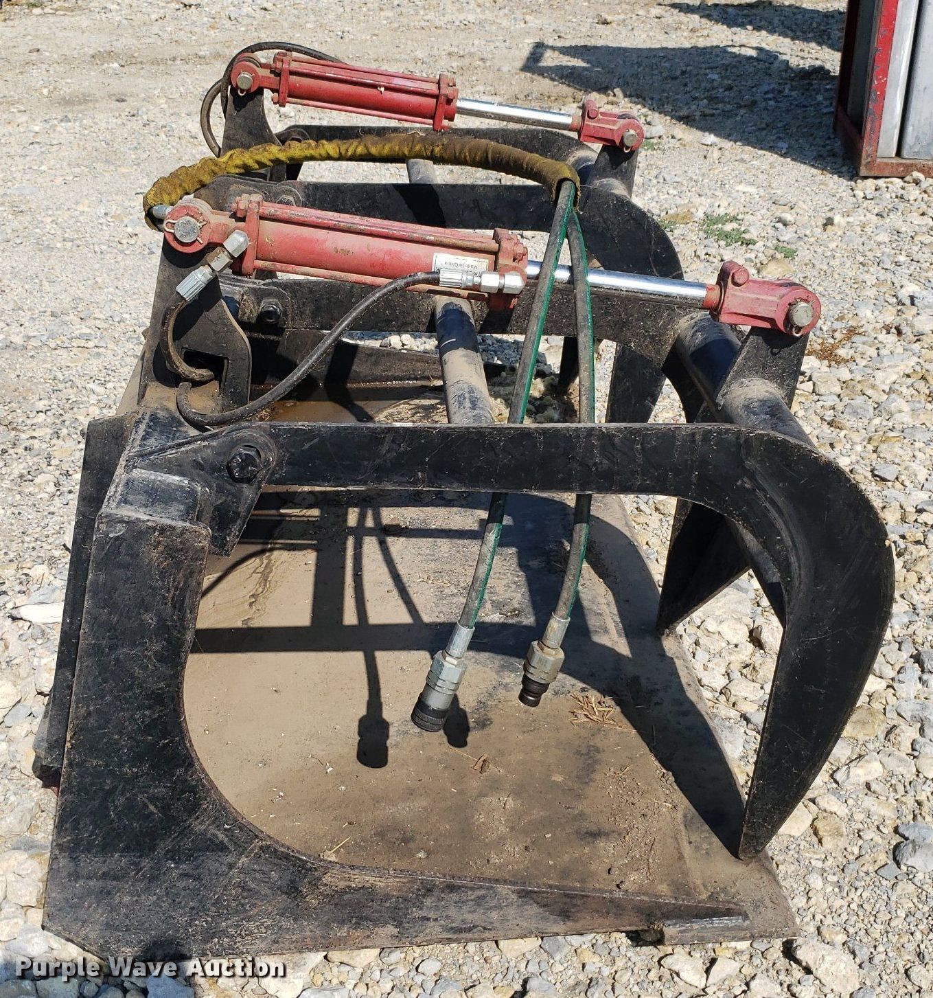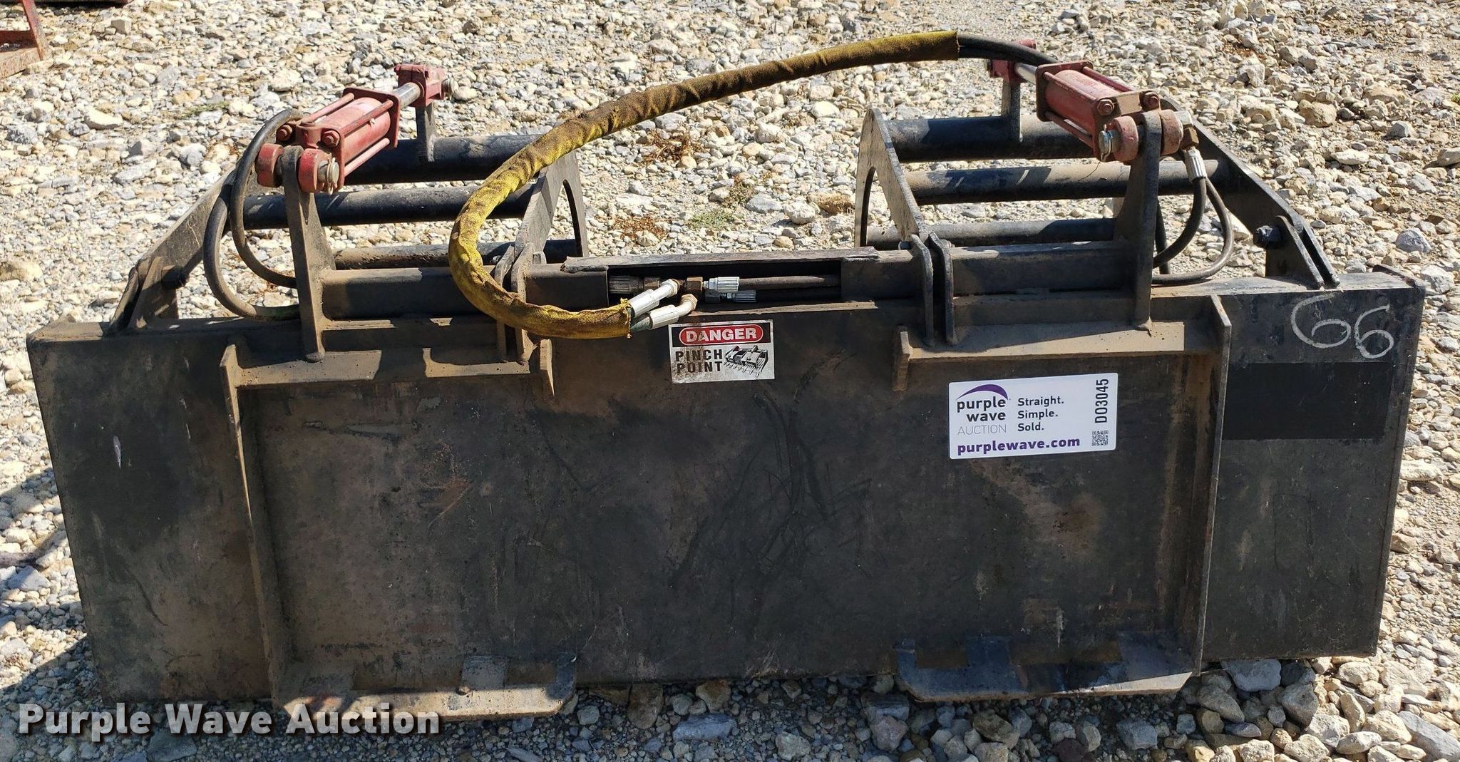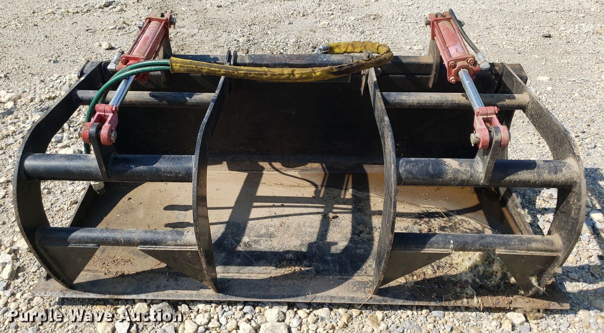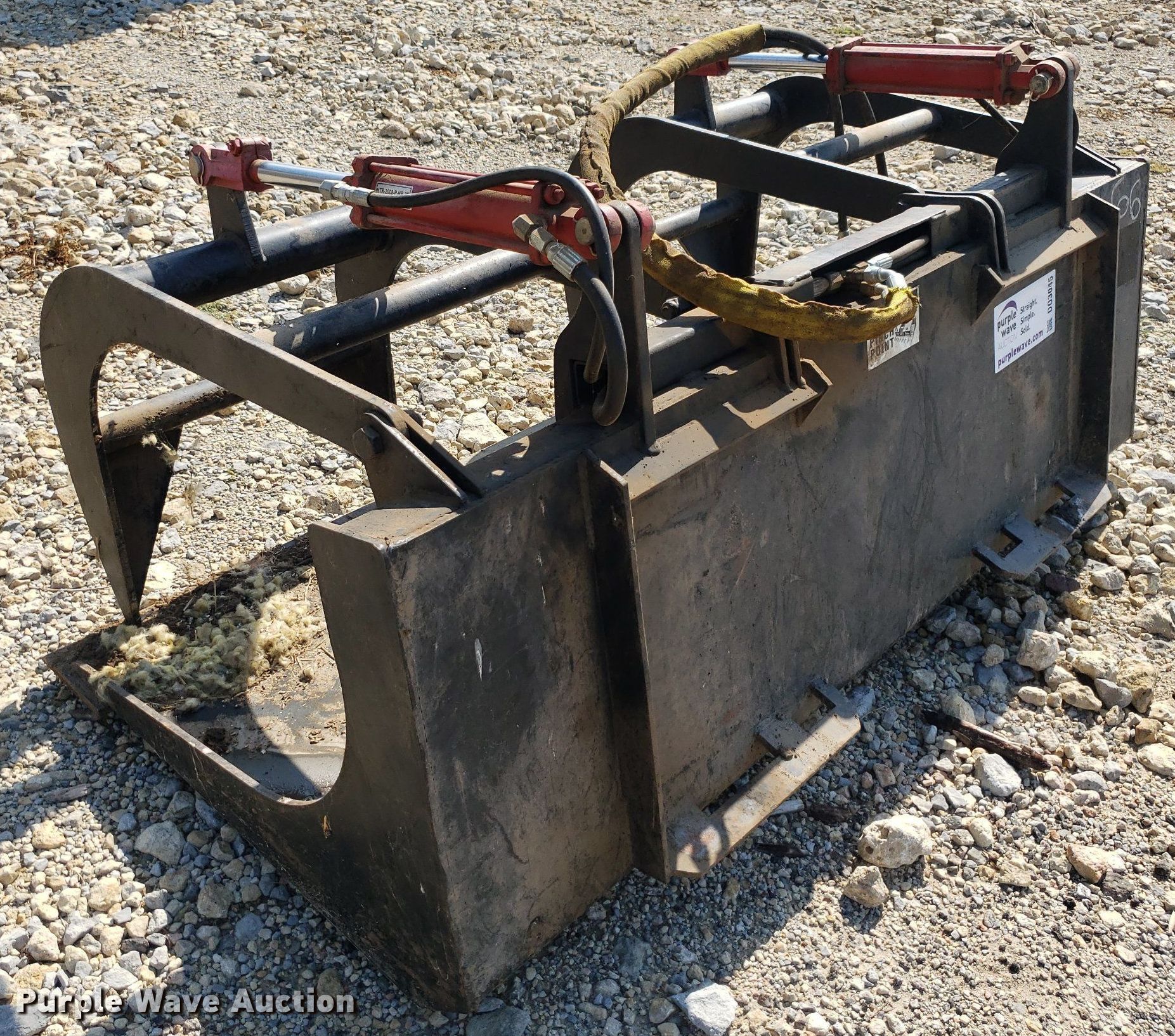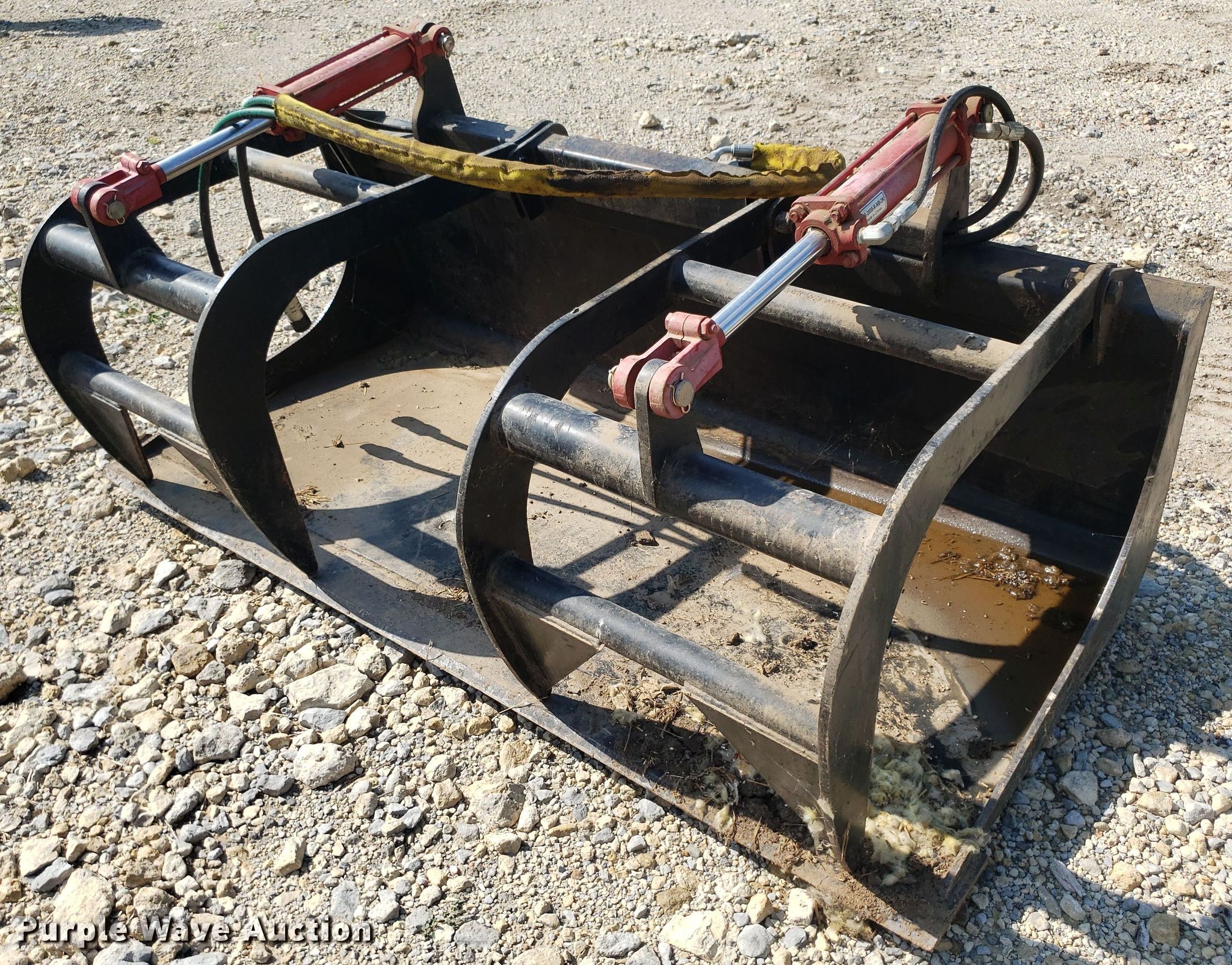 Purple Wave is selling a used Skid Steer Attach. in Kansas. This item is a Skid steer grapple bucket with the following: Width: 65", Cutting edge: Weld-on