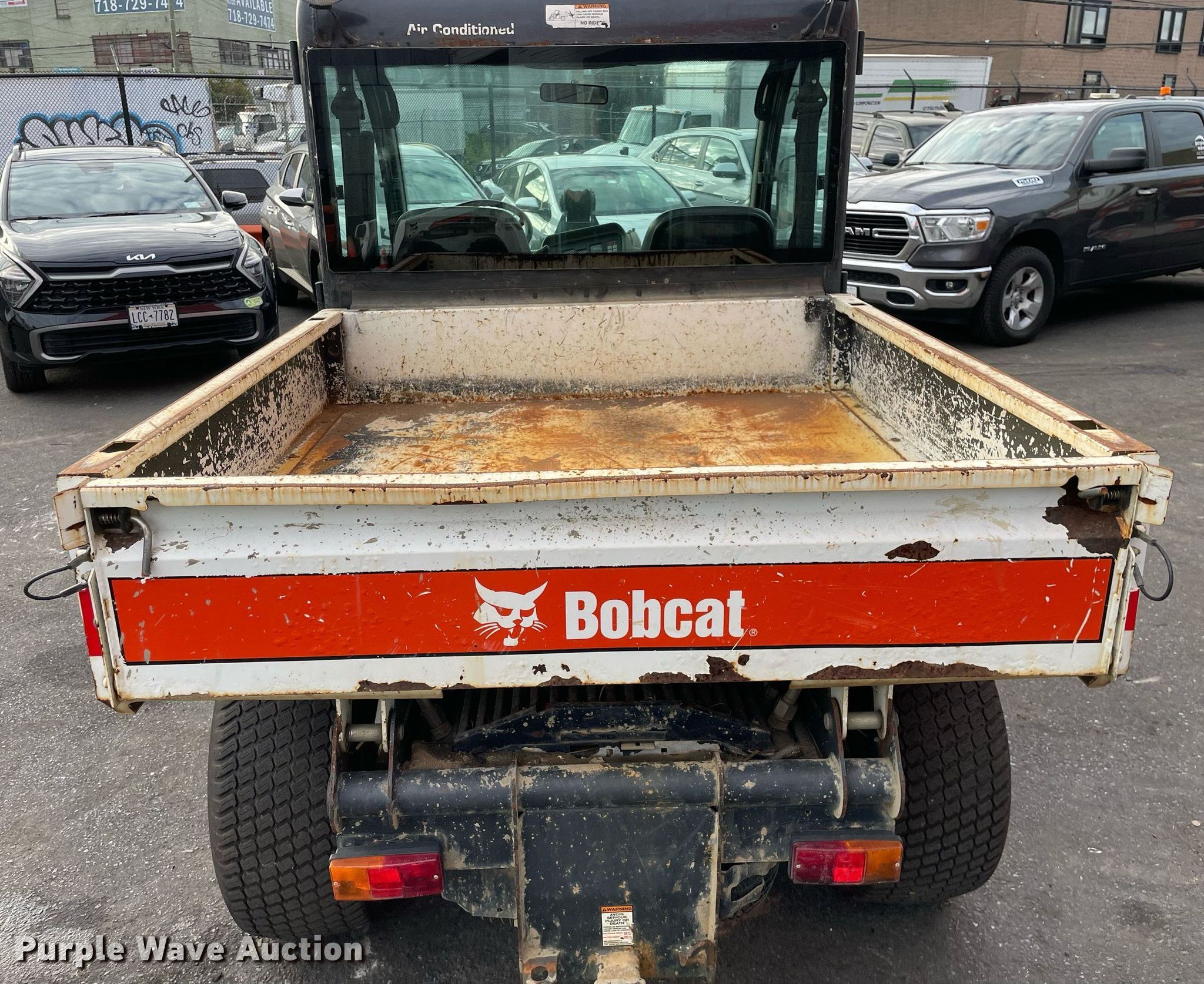 2015 Bobcat Toolcat 5600 utility vehicle. Hours: 2,861 on meter, Serial: AHG811887, Unit #: 2900. Engine Cylinders: 4, Fuel type: Diesel, Electric start. Transmission Hydrostatic. Chassis Four wheel drive. Operators station Enclosed cab, AC, Heat, Steering: Four wheel. Features Receiver hitch, Dump bed 60" L x 56" W, Dump bed type: Electric/ Hydraulic, Tool carrier Auxiliary hydraulics, Auxiliary electrical outlet, Quick coupler: Manual, Bucket Width: 61, Cutting edge: Bolt-on.. Tires Size: 29x12.50-15. Transfer of ownership documentation will be a bill of sale. Bobcat of New York. 58-64A Maurice Avenue. Maspeth, NY 11378