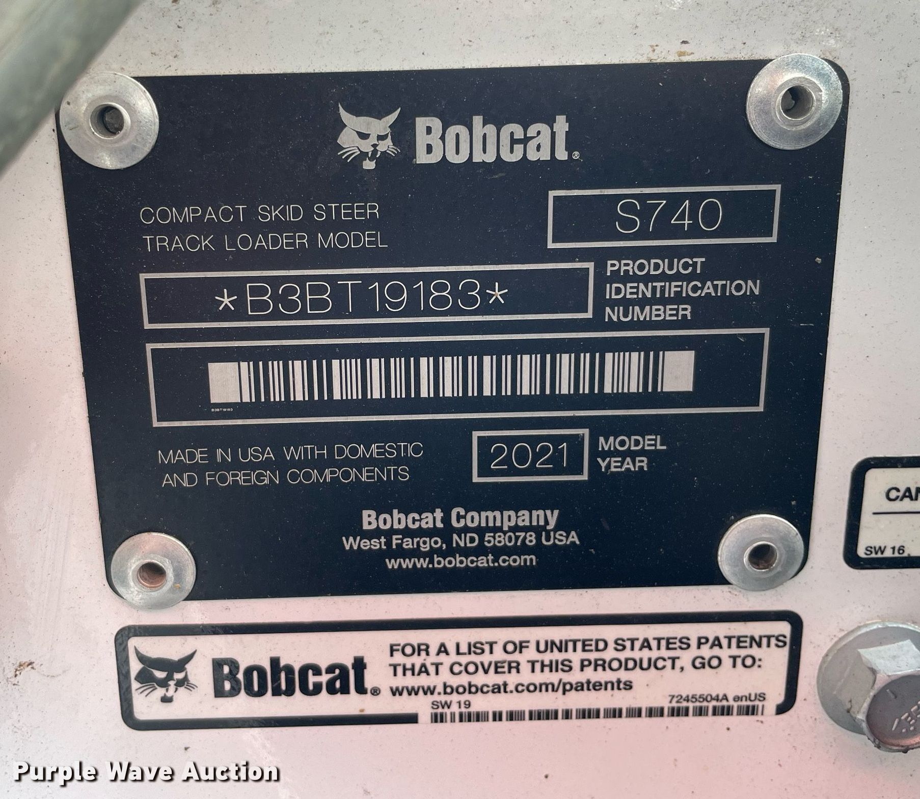 Purple Wave is selling a used Skid Steer Loader in New York. This item is a 2021 Bobcat S740 skid steer loader with the following: Hours: 1,451 on meter, Serial: B3BT19183, Unit #: 3110