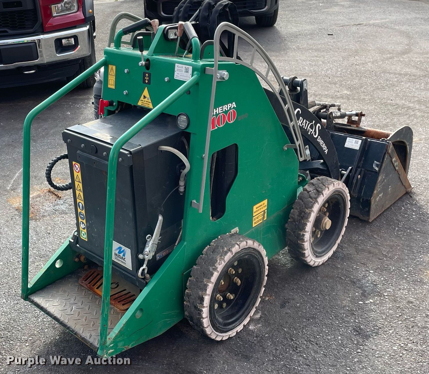 Purple Wave is selling a used Compact Utility Loader in New York. This item is a 2021 Cratos Sherpa 100Eco compact utility loader with the following: Hours: 187 on meter, Serial: E1HA210162, Unit #: 210162