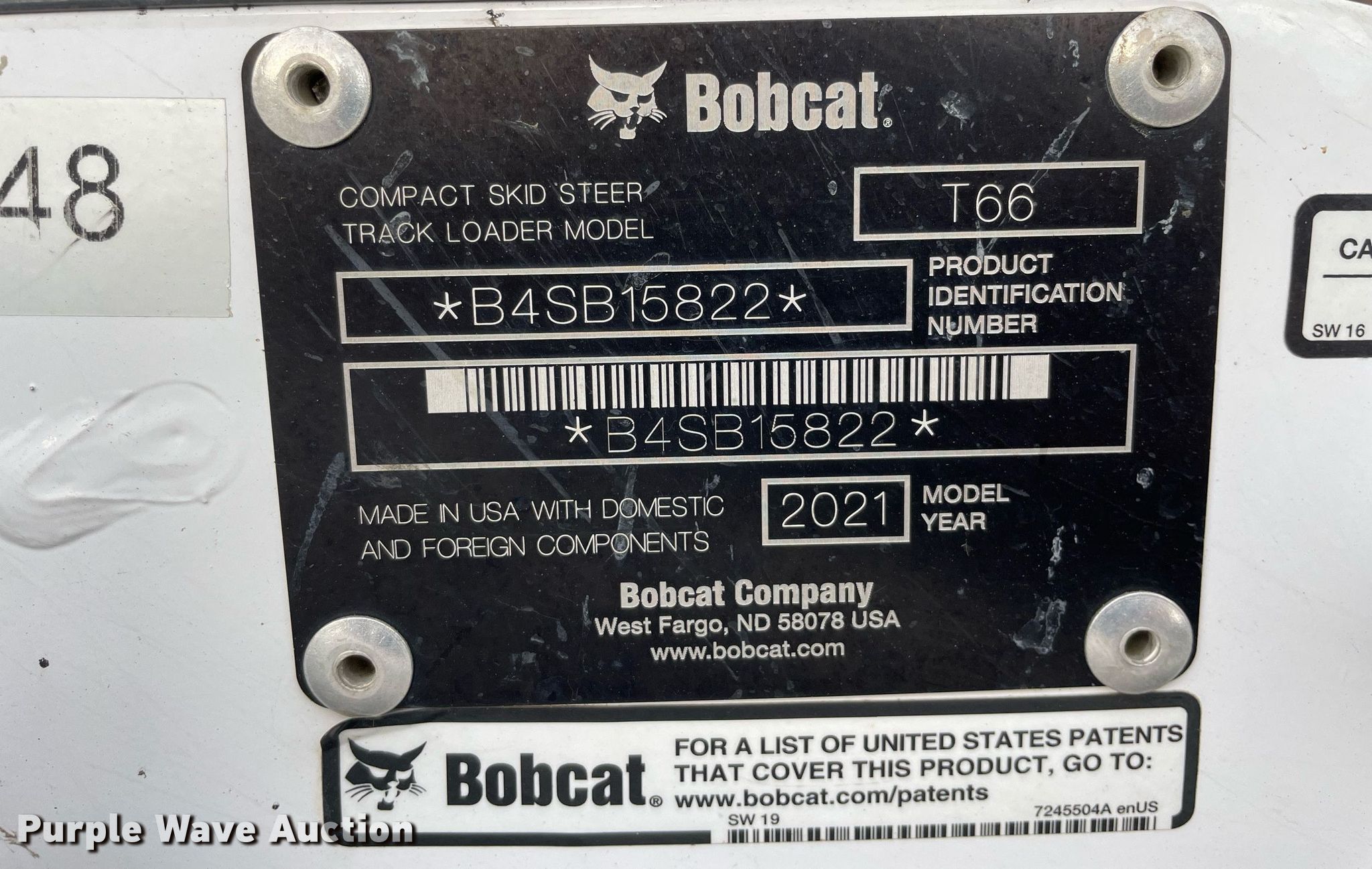 Purple Wave is selling a used Skid Steer Loader in New York. This item is a 2021 Bobcat T66 R Series tracked skid steer loader with the following: Hours: 728 on meter, Serial: B4SB15822, Unit #: B15822