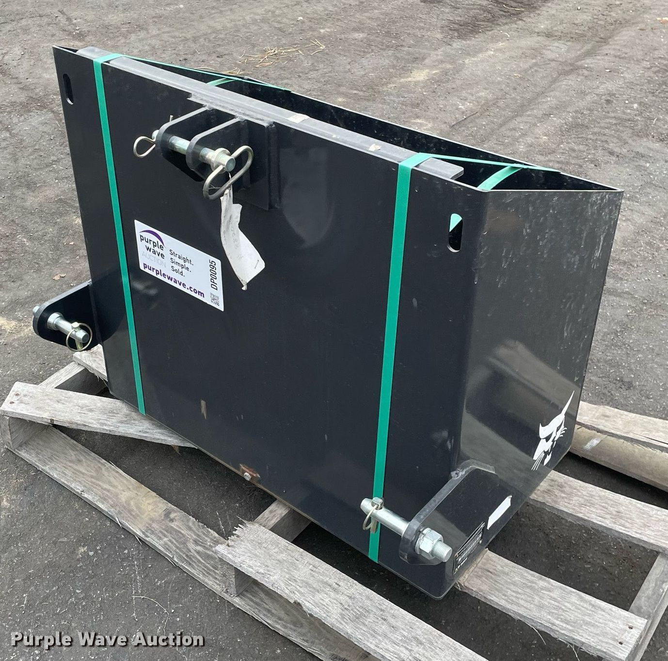 Purple Wave is selling a used Ag Equip. Other in New York. This item is a Bobcat rear ballast box with the following: Serial: B4VB00423, Hitch: Three point, Unused