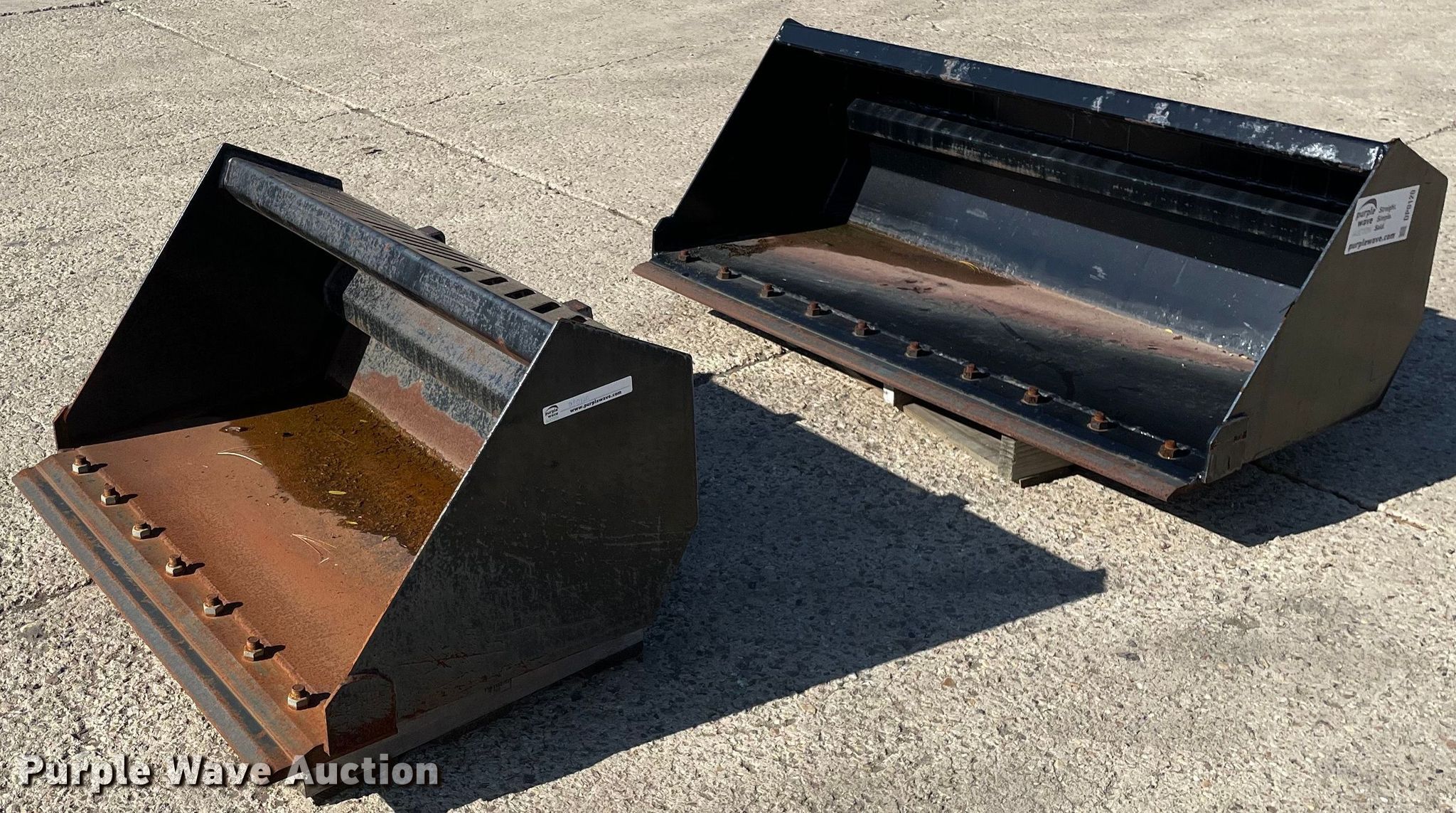 Purple Wave is selling a used Bucket or Loader Attach. in Illinois. This item is a (2) Berlon buckets with the following: 60" W bucket, Cutting edge: Bolt-on, 44" W bucket, Cutting edge: Bolt-on