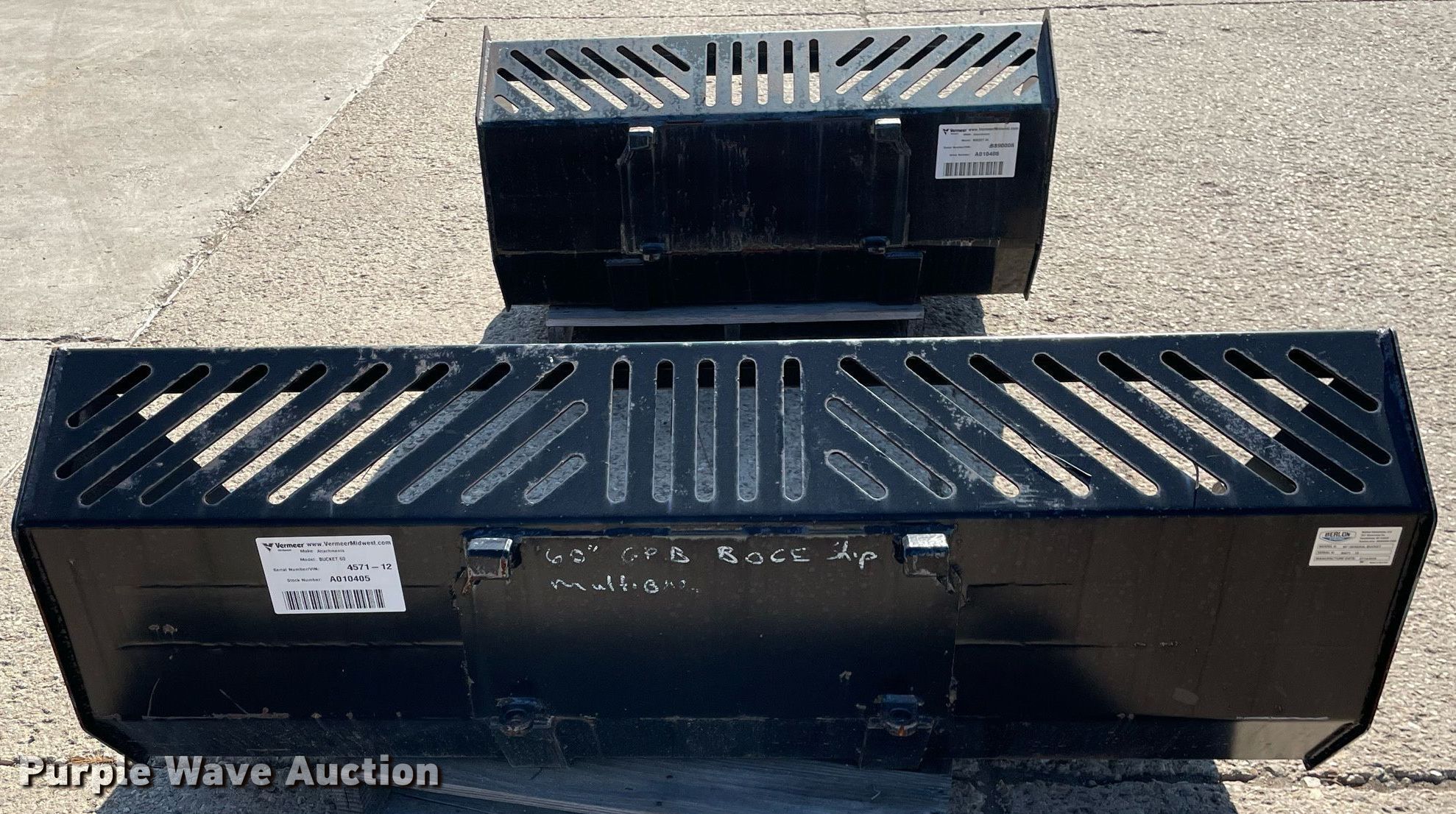 (2) Berlon buckets. 60" W bucket Cutting edge: Bolt-on, 44" W bucket Cutting edge: Bolt-on. Vermeer Midwest. 2801 Beverly Dr. Aurora, IL 60502