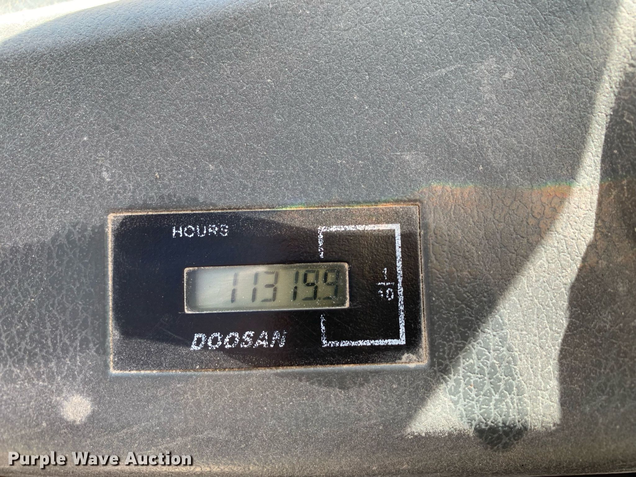 2014 Doosan DL250-3 high lift wheel loader. Hours: 11,320 on meter, Serial: DWGCWLAWJE1010358. Engine Doosan, Cylinders: 6, Fuel type: Diesel. Transmission Powershift, 4F - 4R. Operators station Enclosed cab, AC, Heat, Bucket controls: Joystick. Features Bucket Rockland SGB DL250 HL, Width: 108", Cutting edge: Bolt-on. Tires Size: 20.5-R25. Notes Oil leak. Polysot Creek Ranch LLC. 6004 South First Street. Lufkin, TX 75901