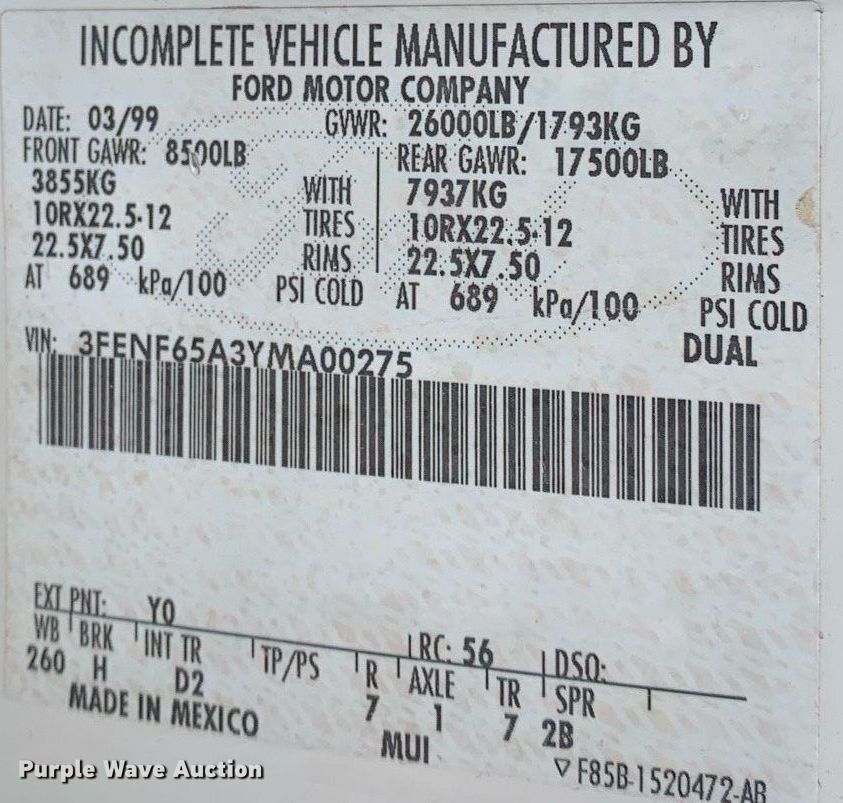 Purple Wave is selling a used Vacuum Truck in Texas. This item is a 2000 Ford F650 Super Duty vacuum truck with the following: Miles: 166,659 on odometer, Hours: 2,091 on meter, Miles or hours may vary, unit still in use, VIN: 3FENF65A3YMA00275