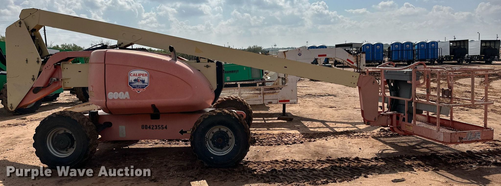 Purple Wave is selling a used Boom Lift in Texas. This item is a 2014 JLG 600A boom lift with the following: Hours: 2,794 on meter, Serial: 0300057713