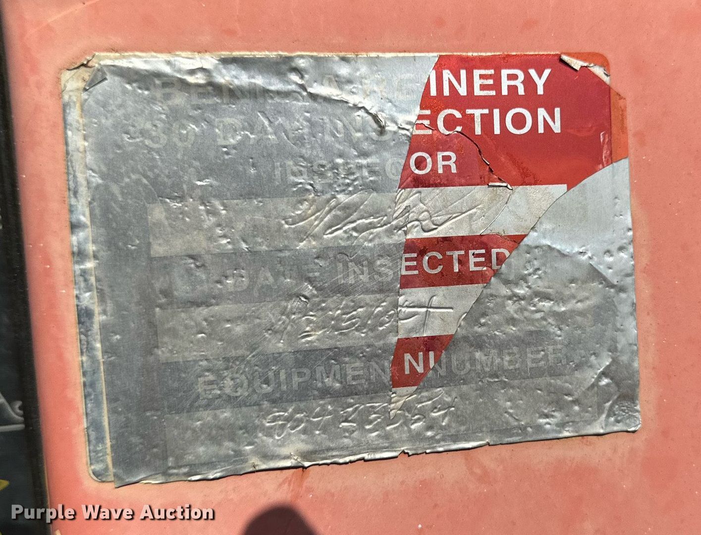 2014 JLG 600A boom lift. Hours: 2,794 on meter, Serial: 0300057713. Engine Deutz, Cylinders: 4, Fuel type: Diesel. Features Articulating boom, Maximum lift capacity: 500 lbs, Maximum reach length: 40', Maximum lift height: 60', Platform: 96" L x 36" W, AC power outlet, Controls: Platform, Ground, Platform rotation: Hydraulic. Tires Tire size: 14-17.5. Notes Vertical lift platform switch issues. Caliper Energy Services. 3801 23rd Street. Snyder, TX 79549