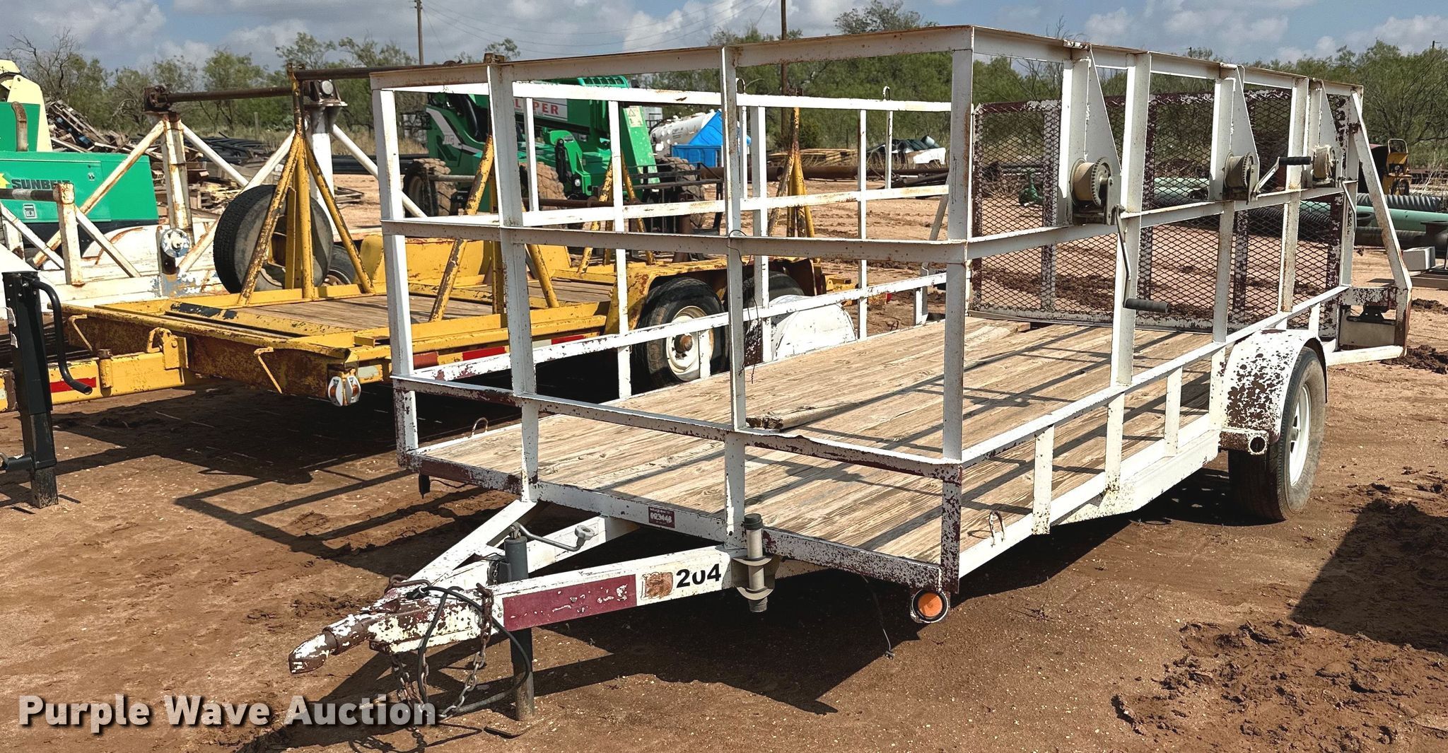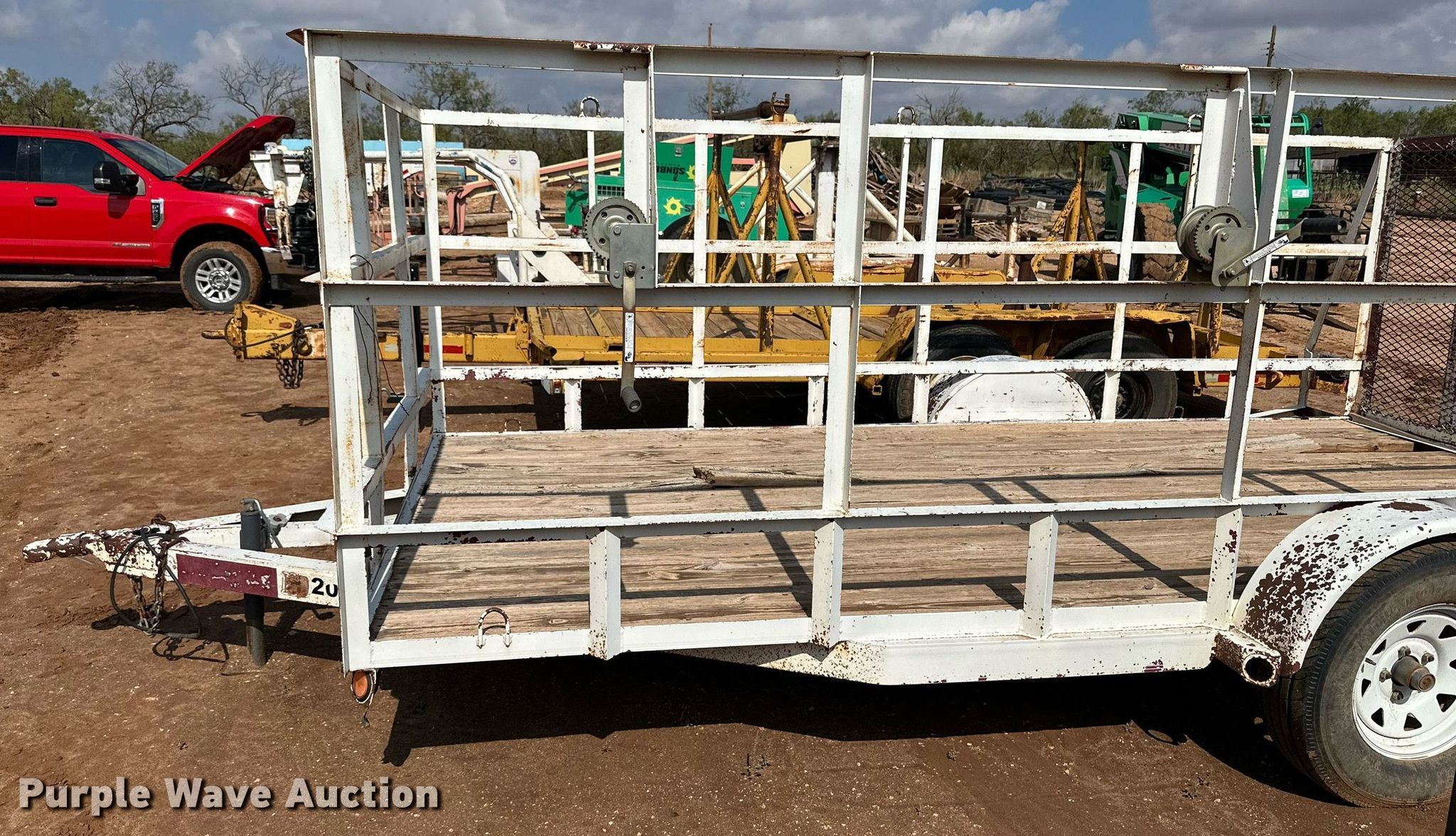 2006 Load Trail Utility trailer. VIN: 4ZEHH141X61023448. Dimensions Overall: 18' L x 102" W, Deck: 14' L x 85" W, Side height: 4', Ramps: Manual Length: 4'. Features Deck type: Wood. Chassis Ball hitch: 2", Landing gear: Single, Suspension: Spring, Brakes: Electric. Tires Steel wheels, Size: 205/75R15, 225/75R15. Notes Deck board damaged. Texas title. Title distribution may be delayed up to 14 days from verification of funds. Caliper Energy Services. 3801 23rd Street. Snyder, TX 79549