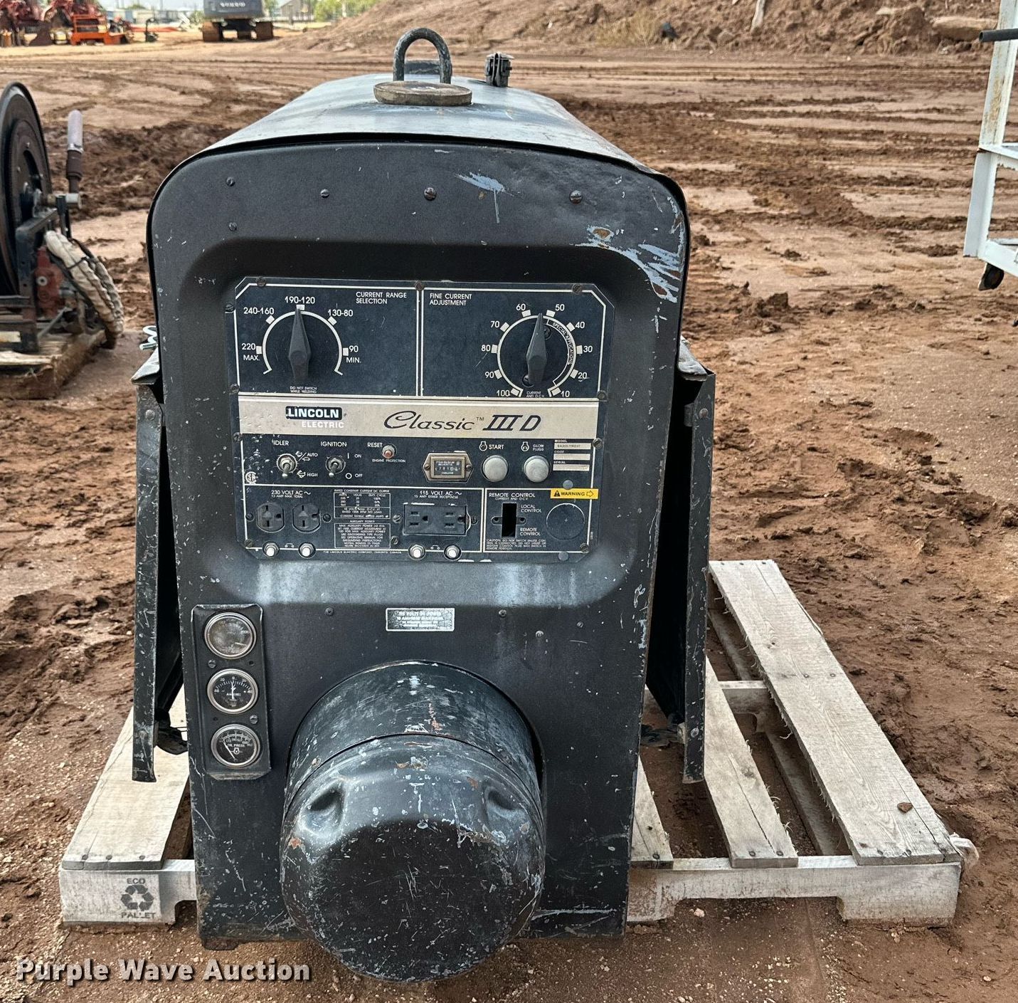 Lincoln Electric SA300-TMD27 welder/generator. Hours: 5,792 on meter, Serial: C1981100370. Engine Cylinders: 4, Fuel type: Diesel. Features Welder Capabilities: DC, AC, Stick, Generator 230V outlets: 2, 115V outlets: 2. Notes Dead battery. Caliper Energy Services. 3801 23rd Street. Snyder, TX 79549