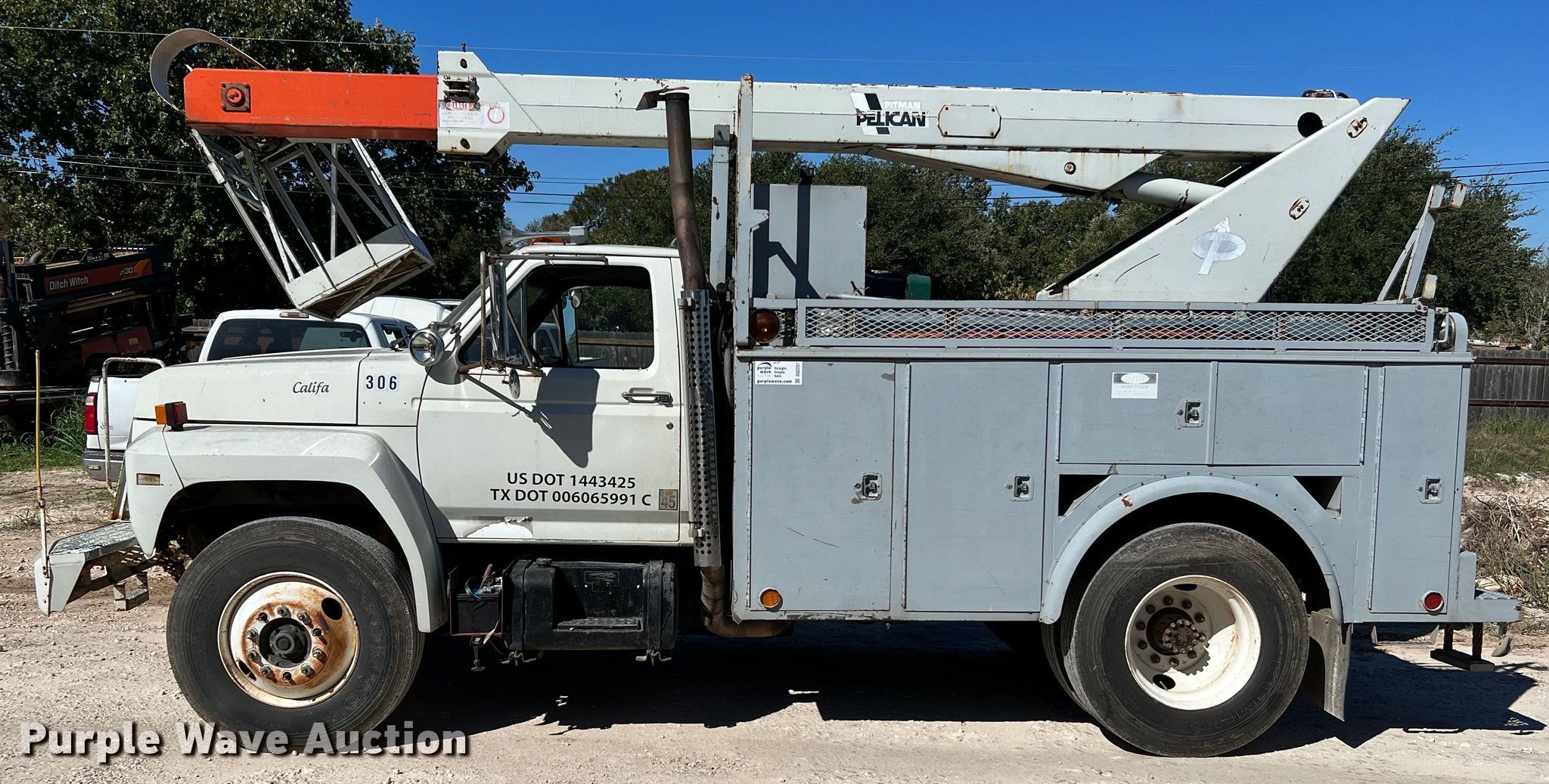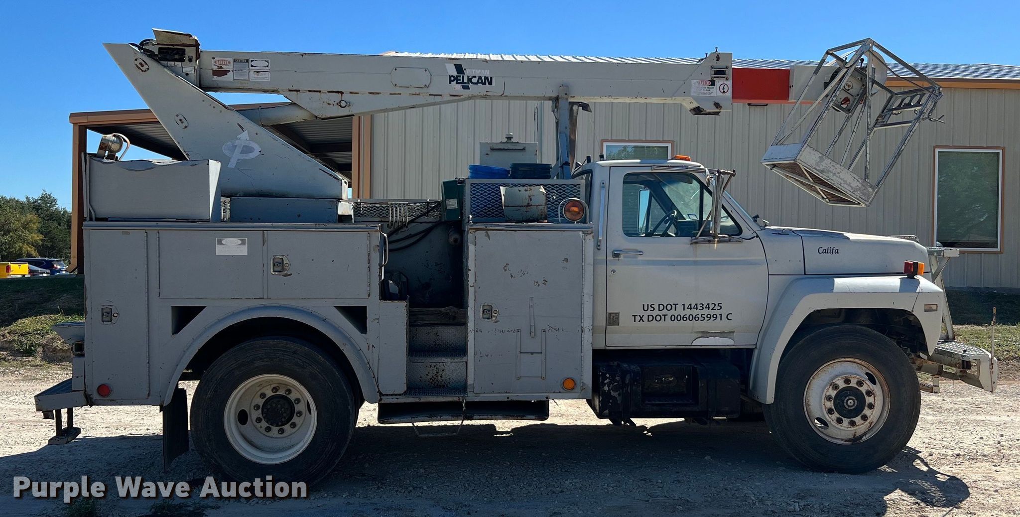 This 1986 Ford F7000 bucket truck will sell to the highest bidder regardless of price.
