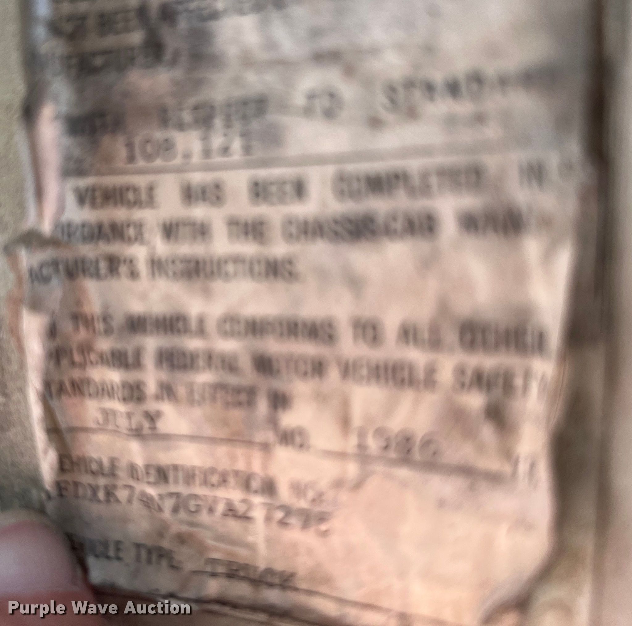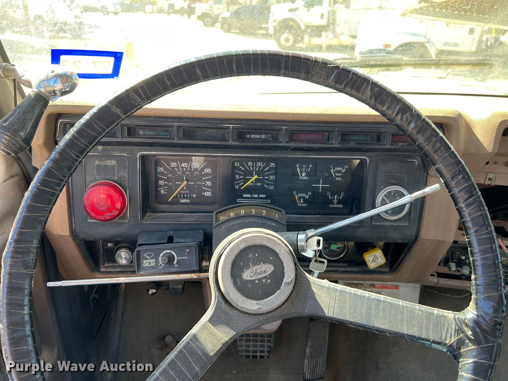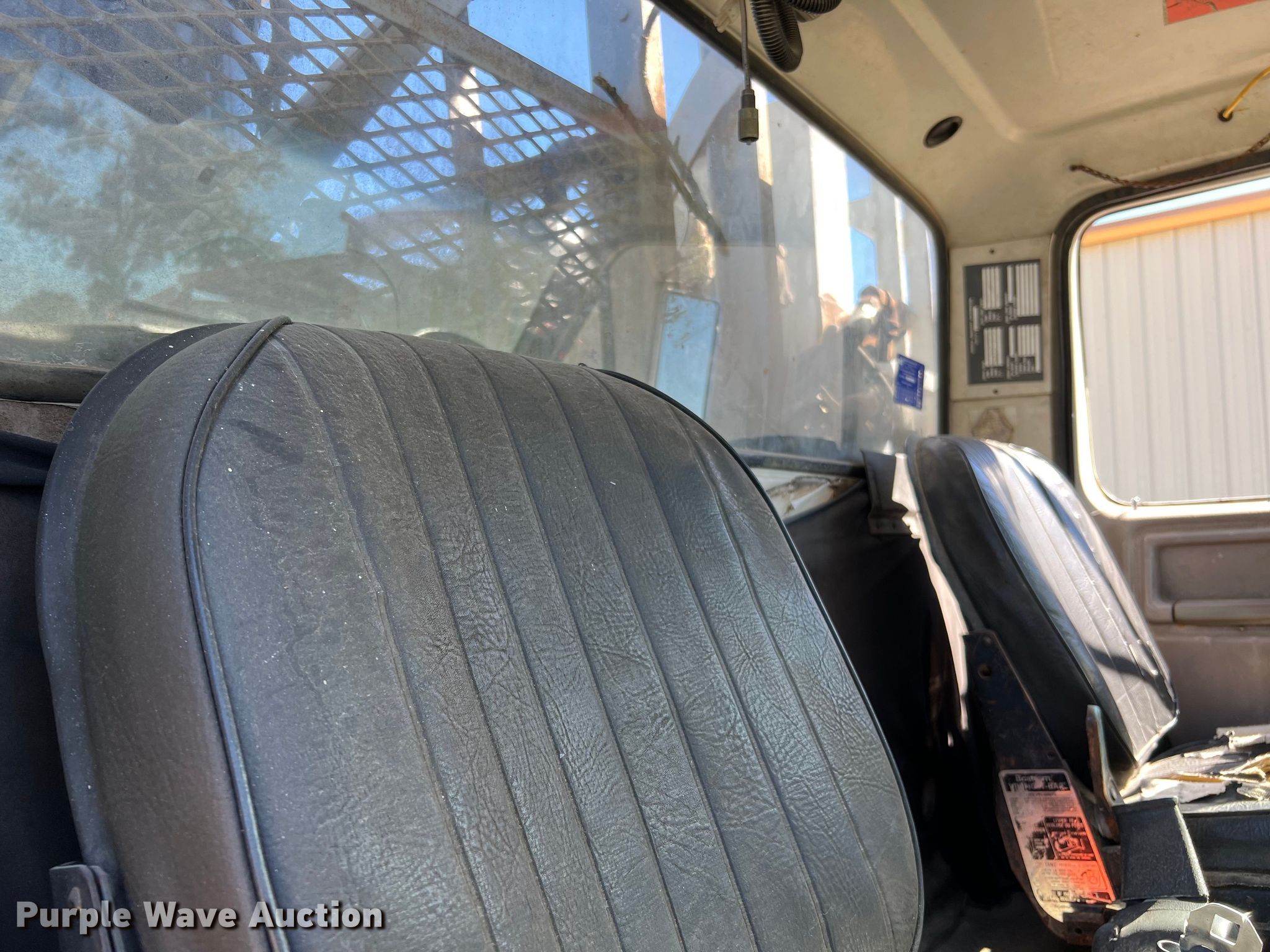 1986 Ford F7000 bucket truck. Miles: 145,882 on odometer, VIN: 1FDXK74N7GVA27275, Unit #: 306. Engine Displacement: 8.2L, Cylinders: 8, Fuel type: Diesel. Transmission Automatic. Chassis Axles: Single, Suspension: Spring, Brakes: Air, PTO, GVWR: 28,000 lbs, Wheelbase: 153". Interior Heat, Brake controller. Features Bed 10' 5" L x 7' 10" W, Boom Maximum lift capacity: 300 lbs, Boom type: Telescopic, Man basket, Boom controls Ground, Platform/ basket.. Tires Size: 11R22.5. Notes Drivers side window missing. Texas title. Title distribution may be delayed up to 14 days from verification of funds. Christman Cable, Inc.. 4383 FM 439. Belton, TX 76513