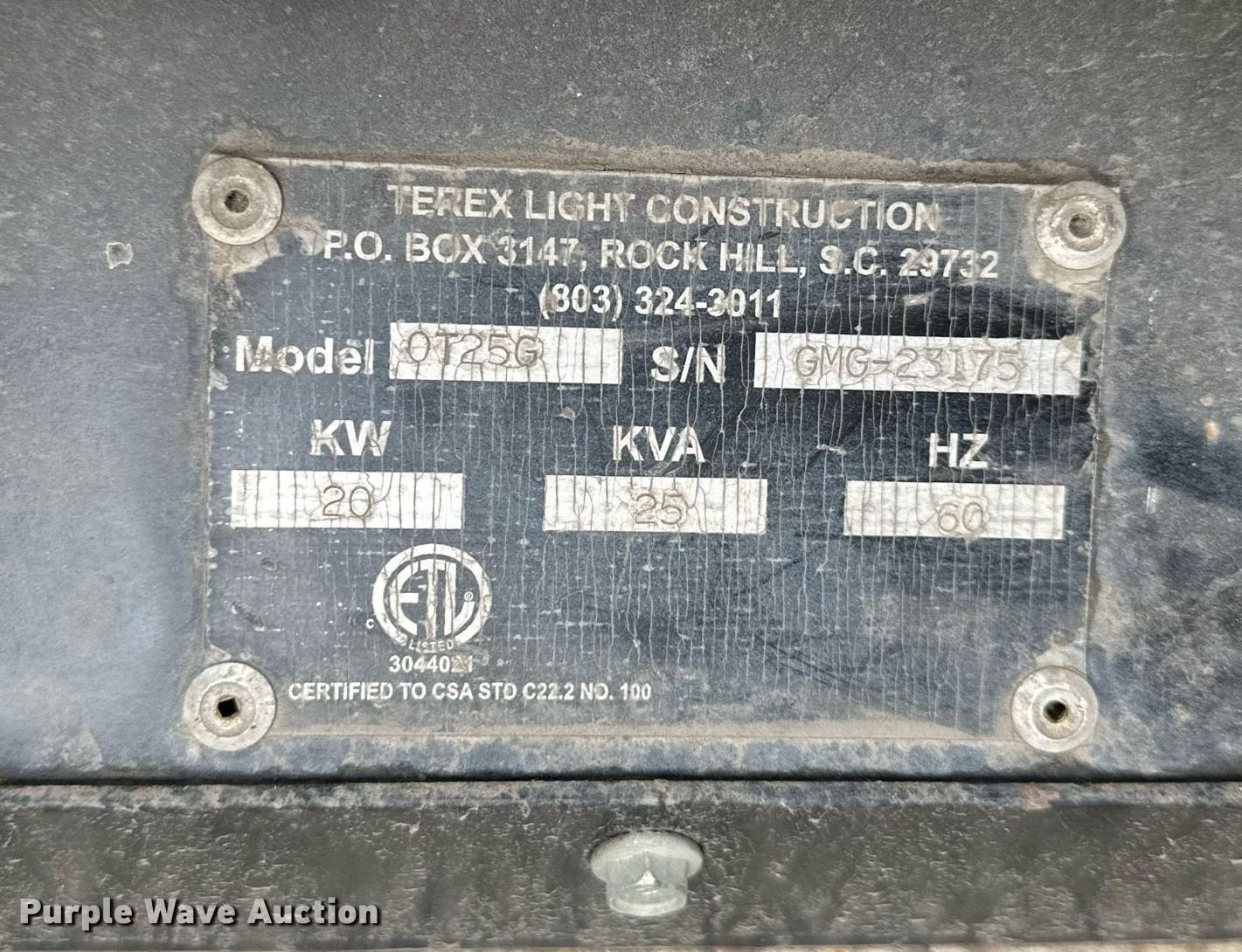 Purple Wave is selling a used Generator Set in Kansas. This item is a Terex Gen-pac T25 generator with the following: Hours: 700 on meter, Serial: GMG-23175