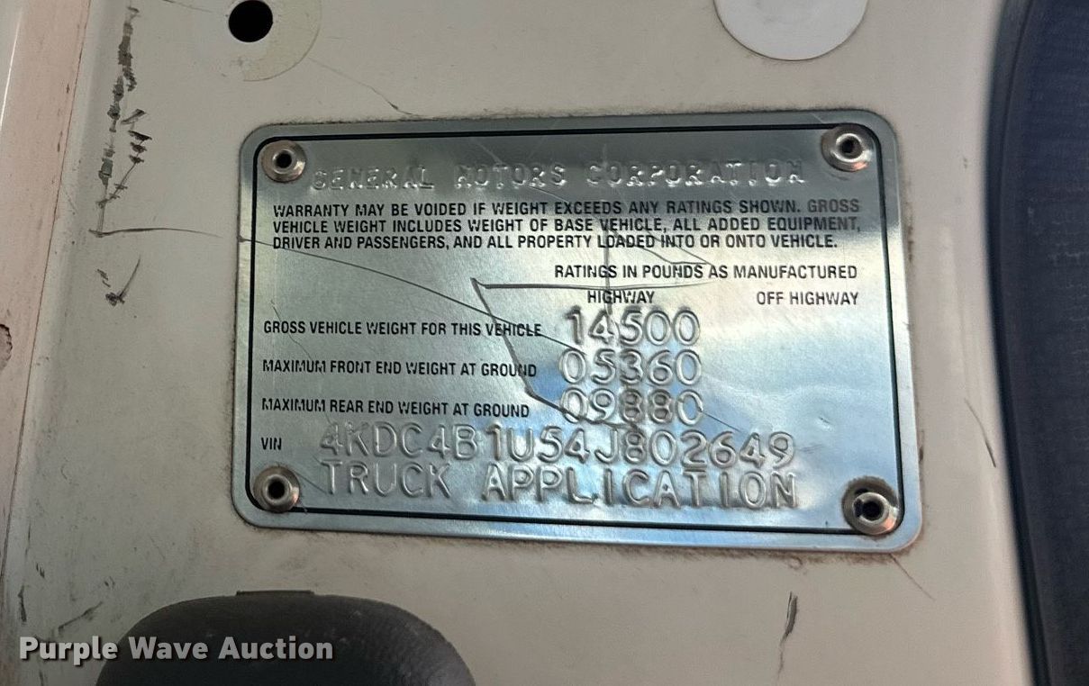 Purple Wave is selling a used Flat Bed Truck in Kansas. This item is a 2004 GMC W4500 flatbed truck with the following: Miles: 115,561 on odometer, VIN: 4KDC4B1U54J802649