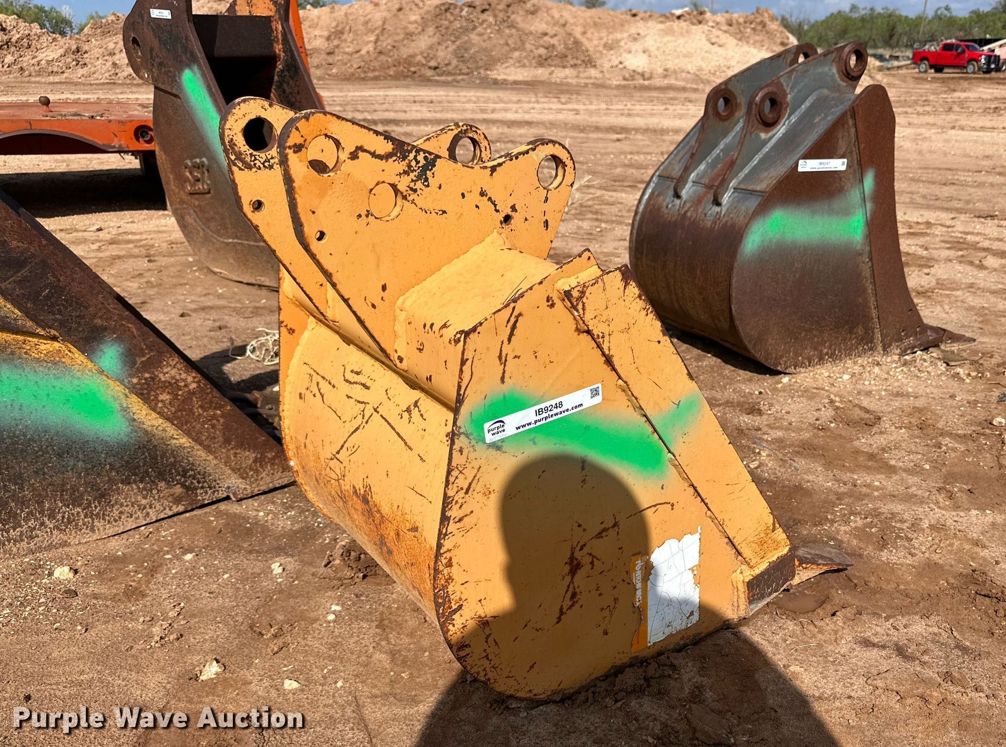 Purple Wave is selling a used Backhoe Attach. in Texas. This item is a 23" W bucket with the following: Teeth: 4