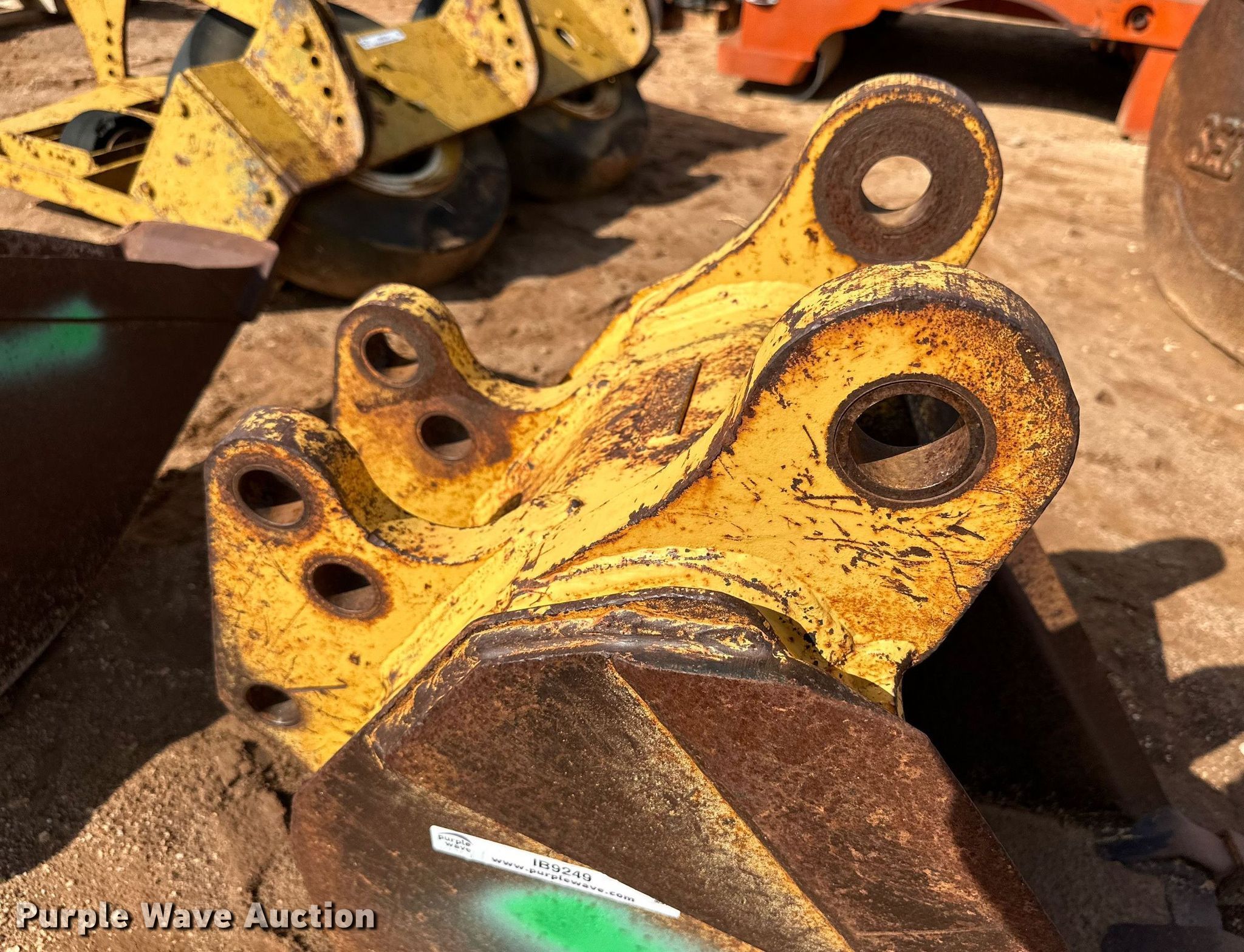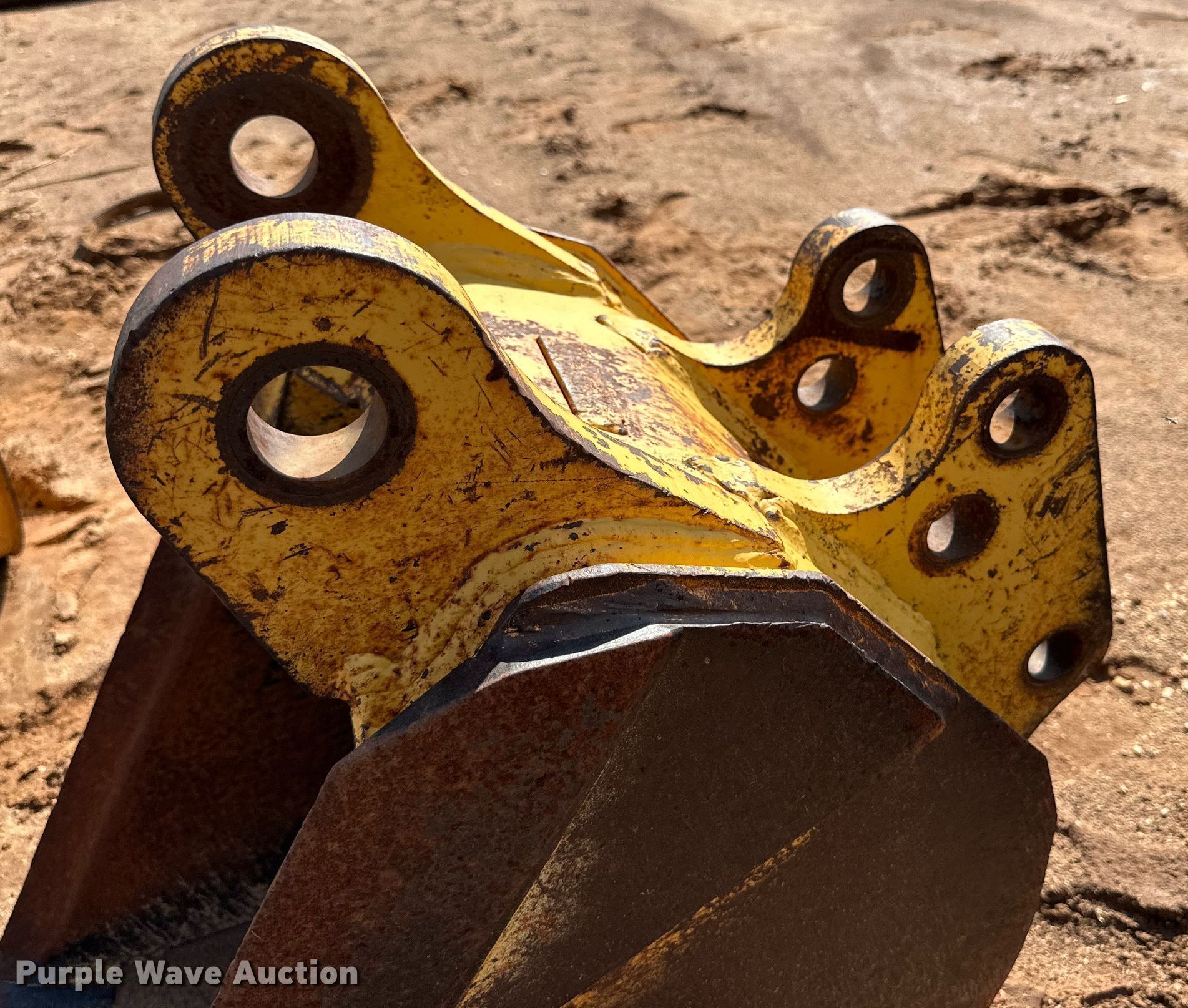 Purple Wave is selling a used Backhoe Attach. in Texas. This item is a 24" W bucket with the following: Teeth: 4