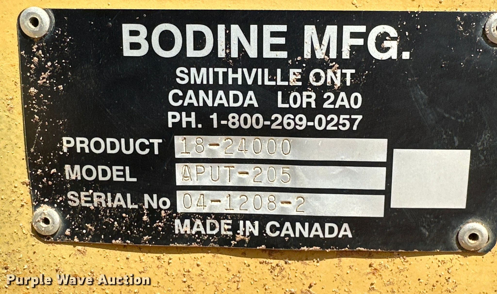 Purple Wave is selling a used Excavator Attach. in Texas. This item is a Bodine Mfg. APUT-205 excavator thumb with the following: Serial: 04-1208-2