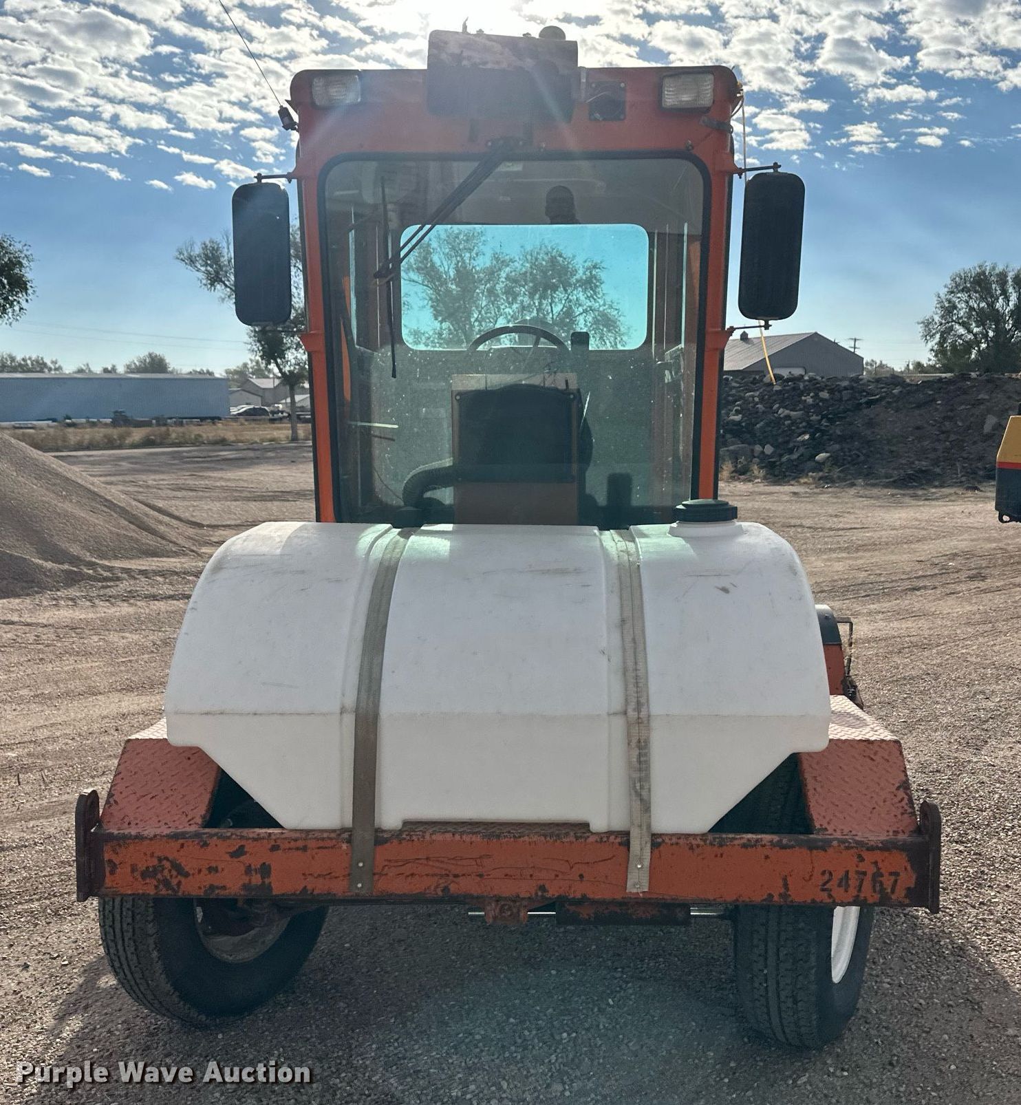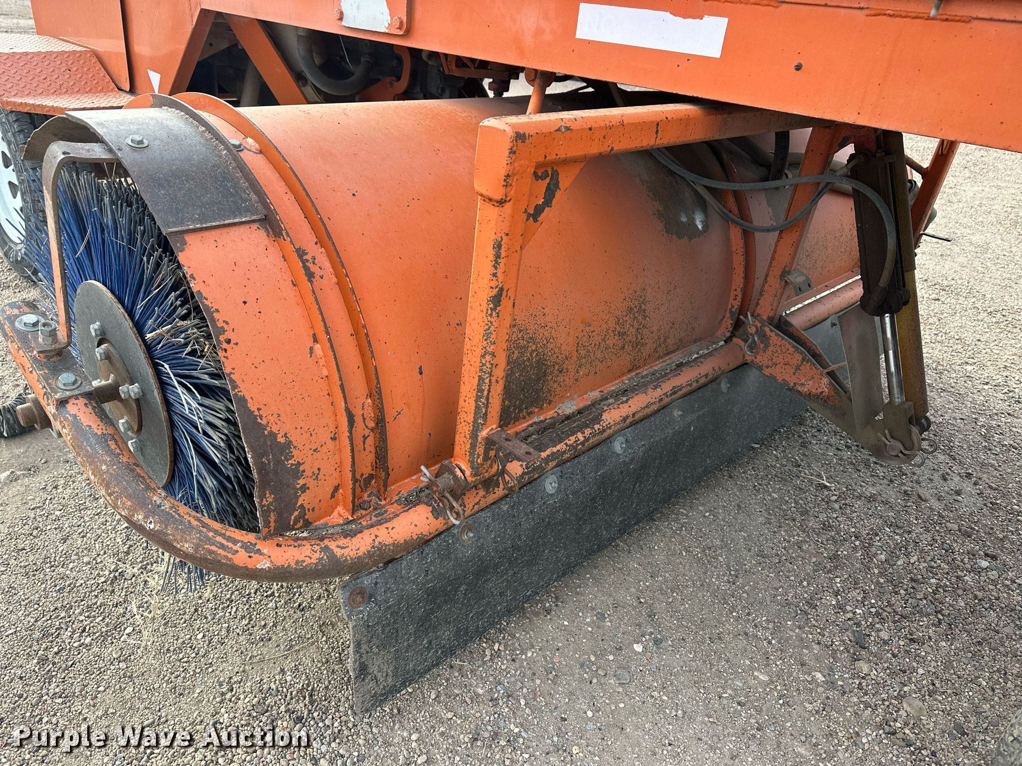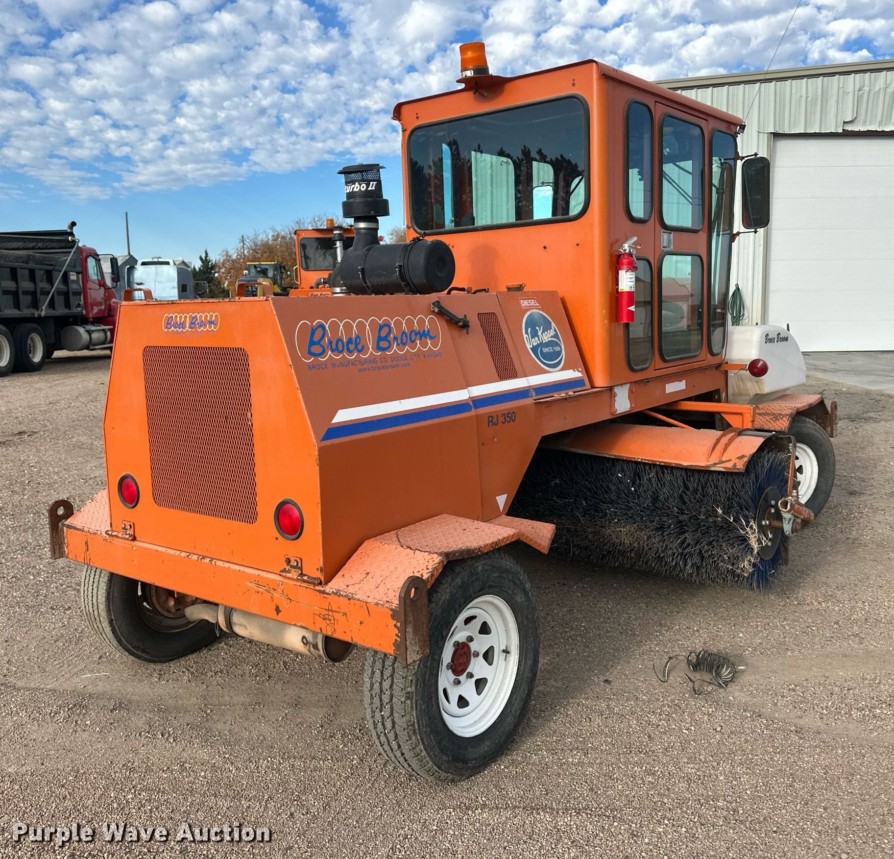 Broce RJ350 broom. Hours: 1,045 on meter, Serial: 406276. Engine John Deere 4045DF270B, Displacement: 4.5L, Cylinders: 4, Fuel type: Diesel. Transmission Hydrostatic, Two speed travel. Chassis Brakes: Hydraulic. Operators station Enclosed cab, AC, Heat. Features Broom Width: 96", Water spray system. Tires Size: 225/75R16. B&H Paving. Scott City, KS 67871