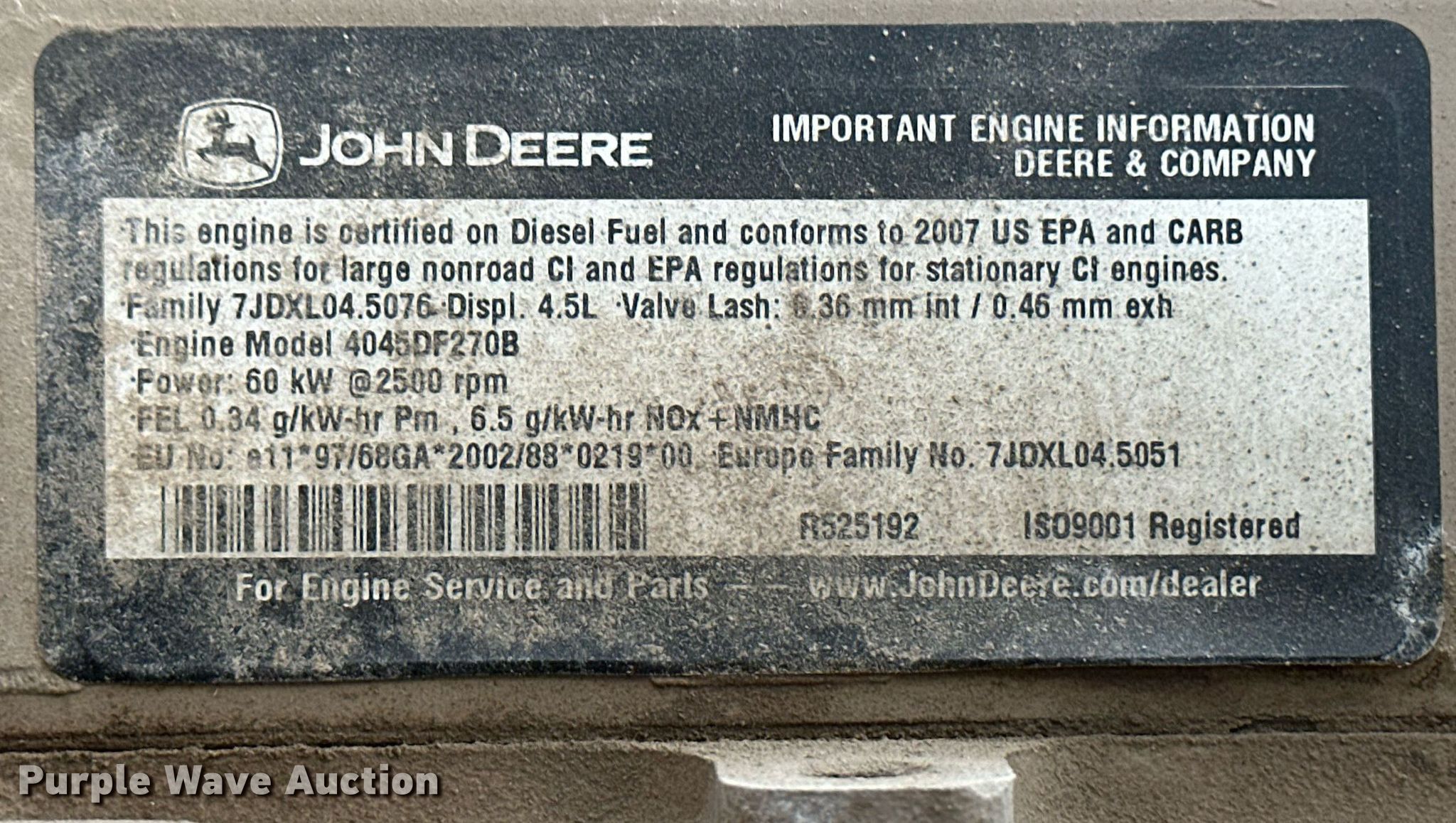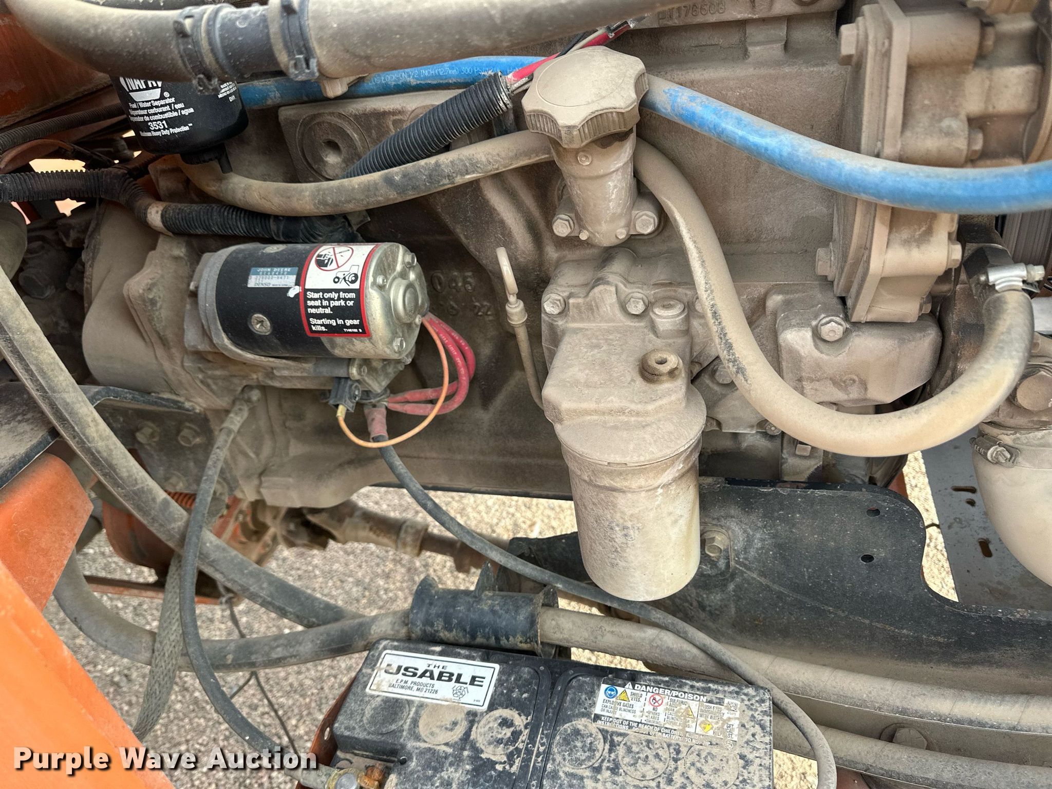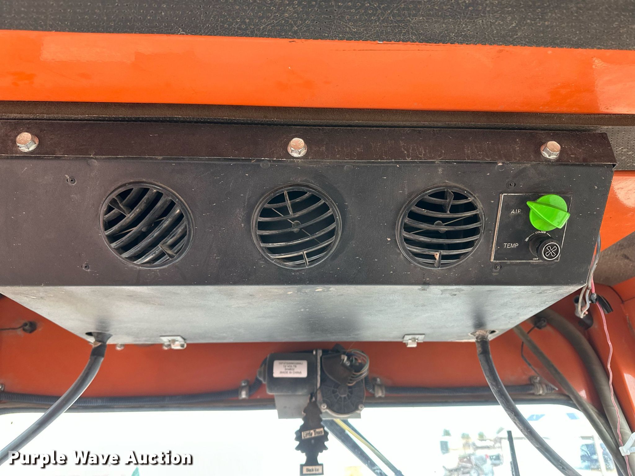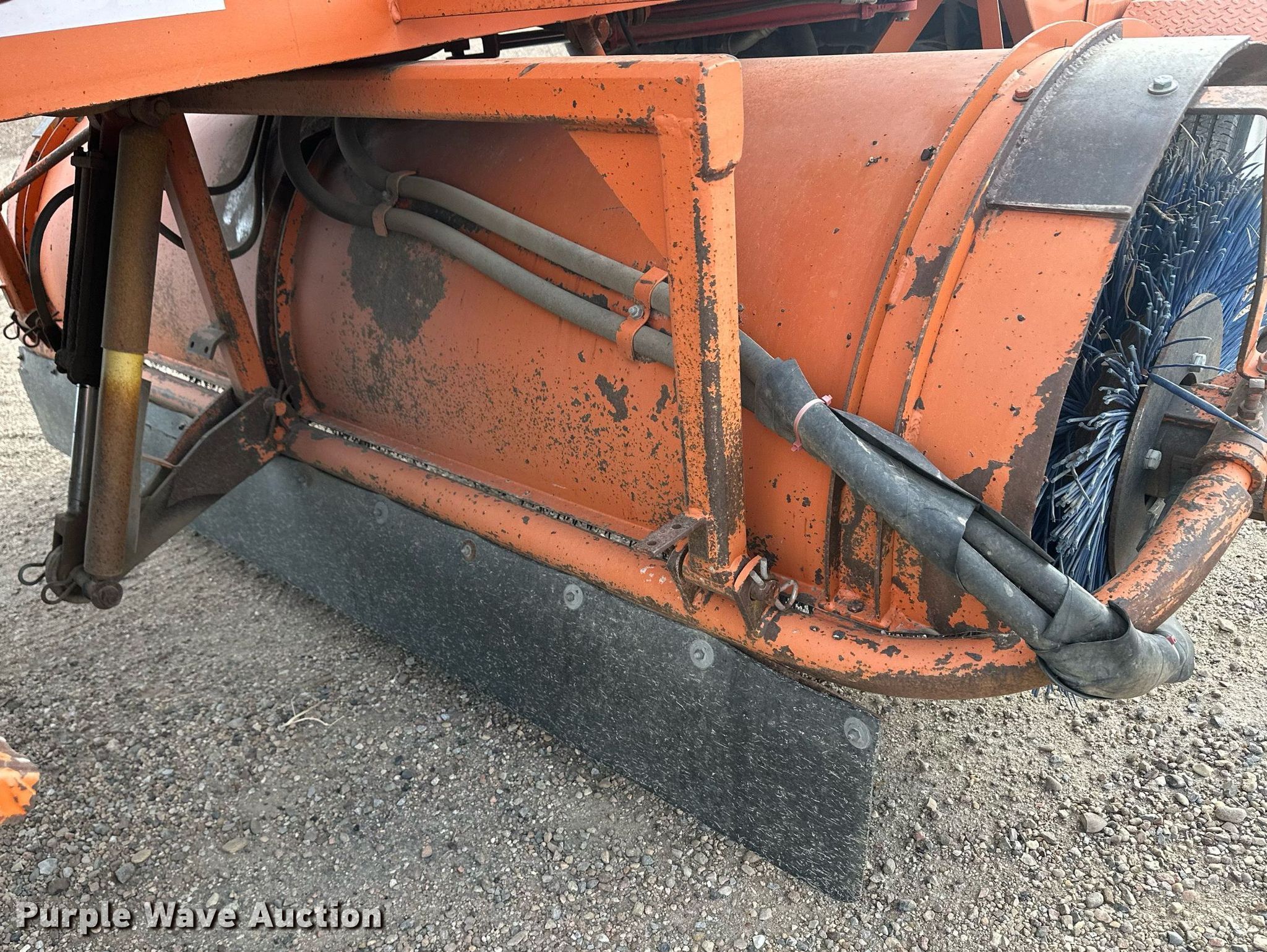 Broce RJ350 broom. Hours: 1,045 on meter, Serial: 406276. Engine John Deere 4045DF270B, Displacement: 4.5L, Cylinders: 4, Fuel type: Diesel. Transmission Hydrostatic, Two speed travel. Chassis Brakes: Hydraulic. Operators station Enclosed cab, AC, Heat. Features Broom Width: 96", Water spray system. Tires Size: 225/75R16. B&H Paving. Scott City, KS 67871
