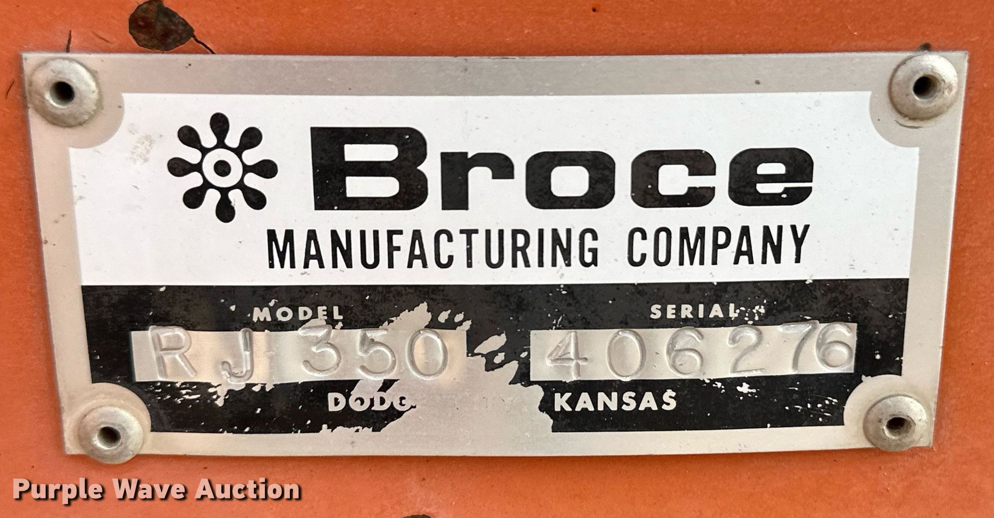 Purple Wave is selling a used Broom in Kansas. This item is a Broce RJ350 broom with the following: Hours: 1,045 on meter, Serial: 406276