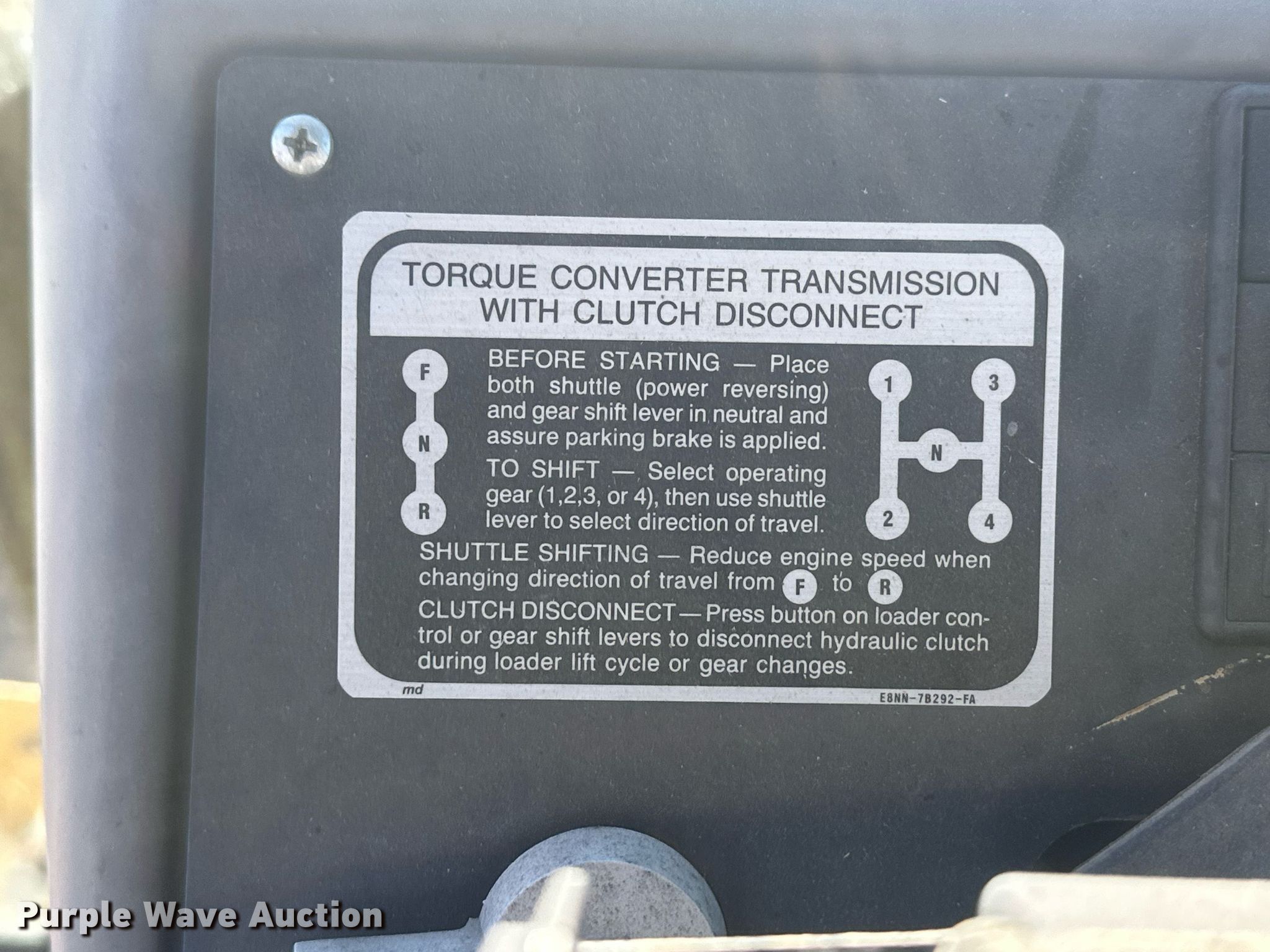 1993 Ford New Holland 555D backhoe. Hours: 7,031 on meter, Serial: A423114. Engine Ford, Cylinders: 4, Fuel type: Diesel. Transmission Shuttle shift, 4F - 4R. Operators station Enclosed cab, Backhoe controls: Wobble stick / two stick. Features Loader Quick coupler: Manual, Bucket Width: 88", Cutting edge: Bolt-on, Backhoe Thumb: Hydraulic, Bucket Width: 18", Cutting edge: Weld-on, Teeth: 4.. Tires Front: 11L-6SL, Rear: 18.4-24. Notes Non-operational gauges , Front tilt cylinder issues, leaks. Healy, KS 67850