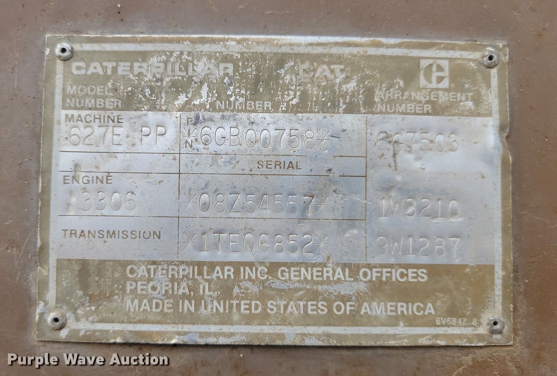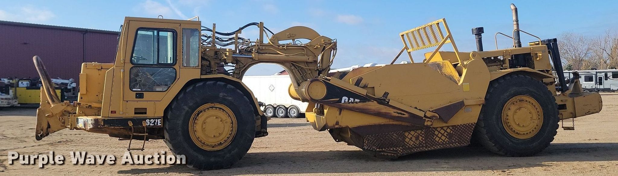 Purple Wave is selling a used Conventional Scraper in South Dakota. This item is a 1989 Caterpillar 627E conventional scraper with the following: Hours: 3,279 on meter, Serial: 6GB00758