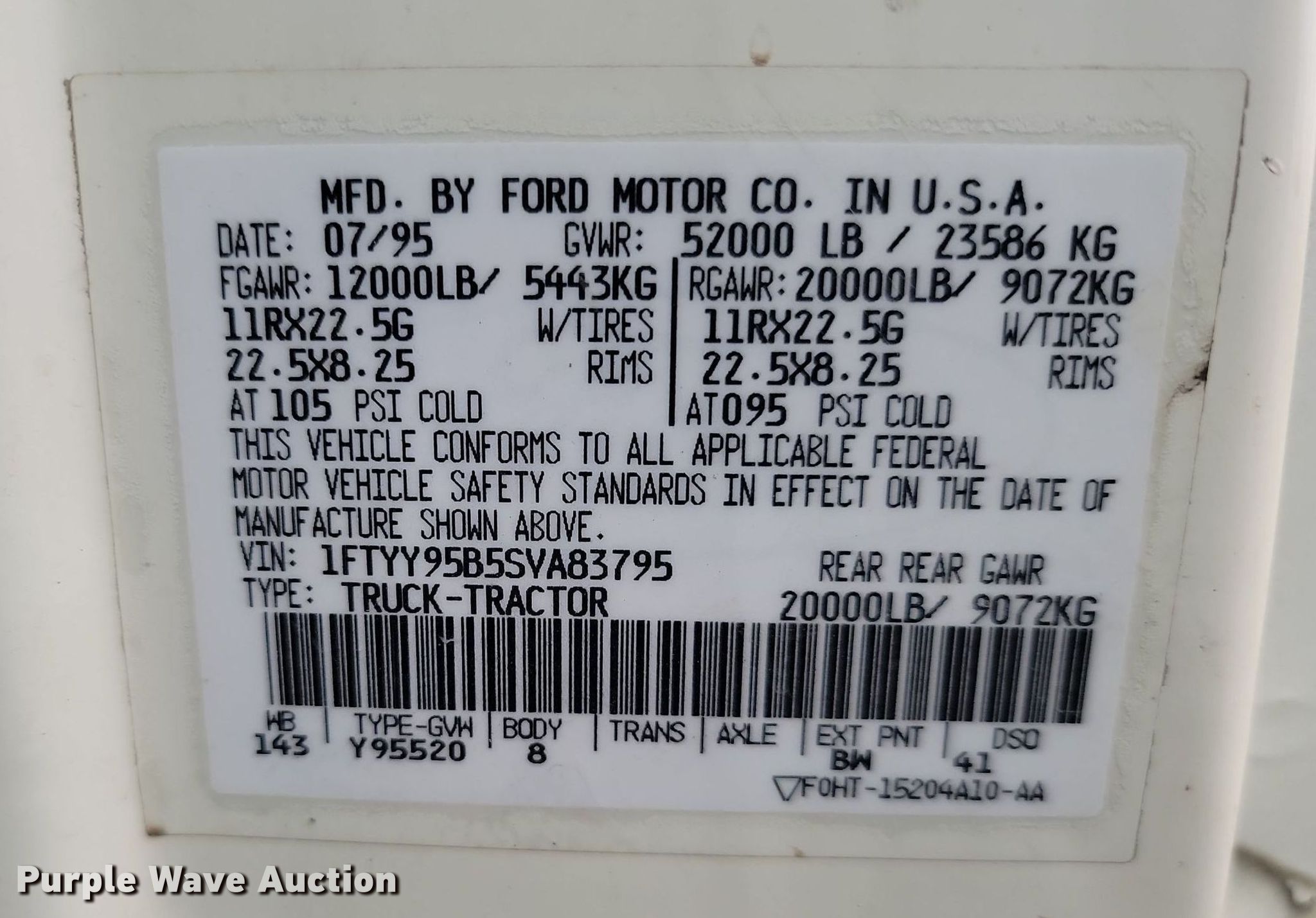 Purple Wave is selling a used Construction Dump Truck in South Dakota. This item is a 1995 Ford LTA9000 dump truck with the following: Miles: 120,462 on odometer, VIN: 1FTYY95B5SVA83795