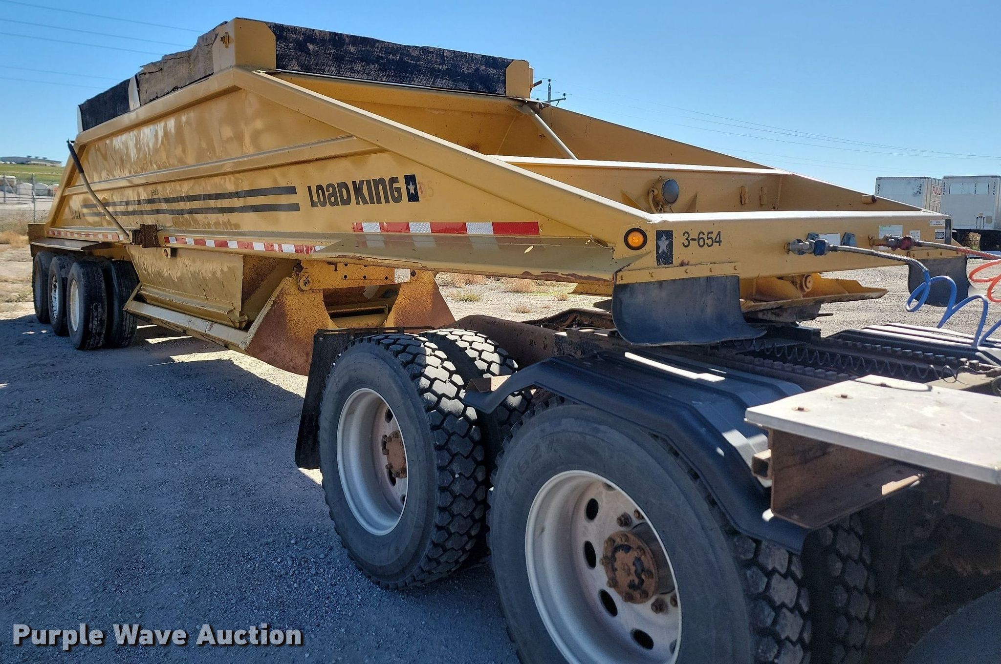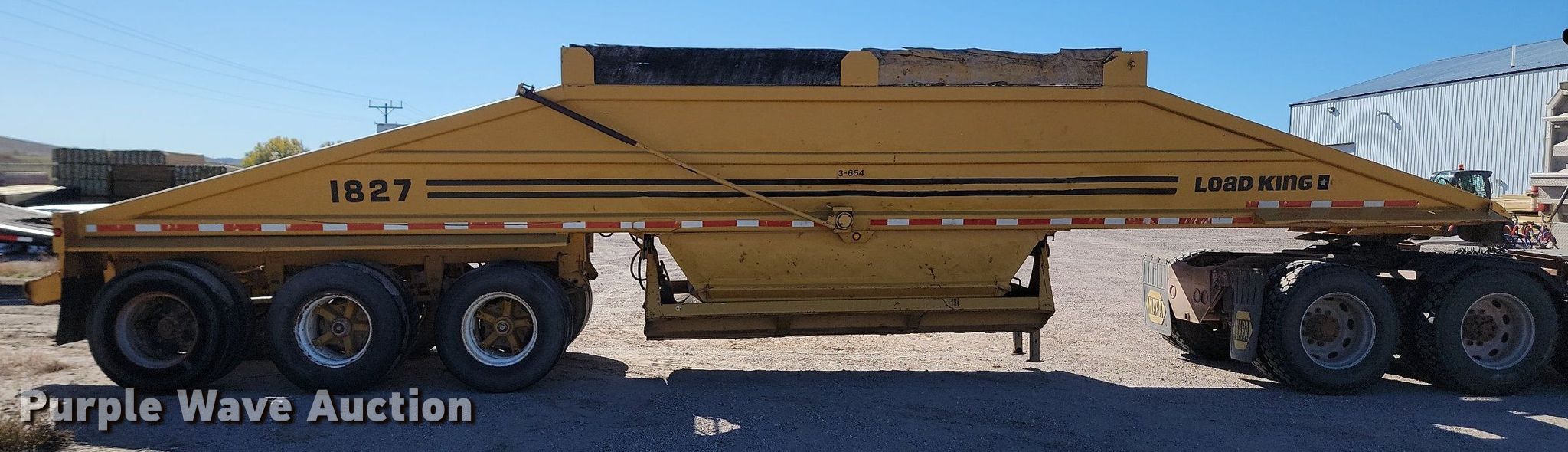 1985 Load King bottom dump trailer. VIN: 1L4B38339F1013384. Dimensions Overall: 38' L x 96" W. Features Body type: Steel, End gate: Air operated, Clamshell gate: Air operated, Rear push block. Chassis Landing gear: Dual, Suspension: Spring, Brakes: Air, Axles: Triple. Tires Steel wheels, Size: 11R22.5. Notes Truck not included. Nebraska title. Title distribution may be delayed up to 14 days from verification of funds. Fuller Construction. 555 South Stockade Road. Chadron, NE 69337