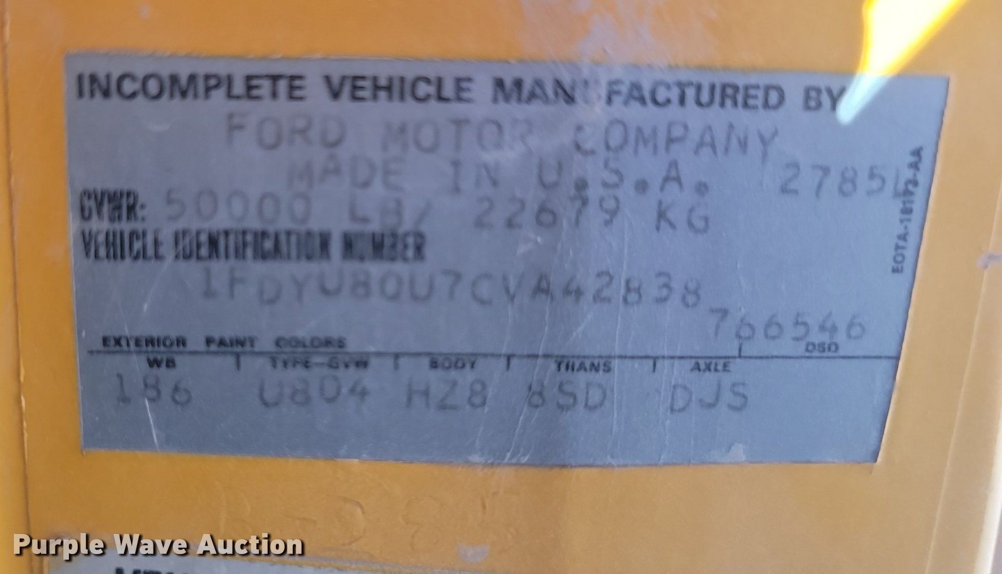 1982 Ford LT8000 dump truck. Miles: 47,846 on odometer, VIN: 1FDYU80U7CVA42838. Engine Caterpillar 3208, Displacement: 10.4L , Cylinders: 8, Fuel type: Diesel. Transmission Manual. Chassis Axles: Tandem, Differential lock: Inter-axle, Suspension: Spring over walking beam, Brakes: Air, PTO. Interior Heat. Features Dump bed 14' L x 96" W, Side height: 36", Bed type: Steel, Ram: Single , End gate: Air operated. Tires Size: 11R22.5. Notes Non-operational air ram on end gate, Transmission issues, 2nd gear missing. Nebraska title. Title distribution may be delayed up to 14 days from verification of funds. Fuller Construction. 555 South Stockade Road. Chadron, NE 69337