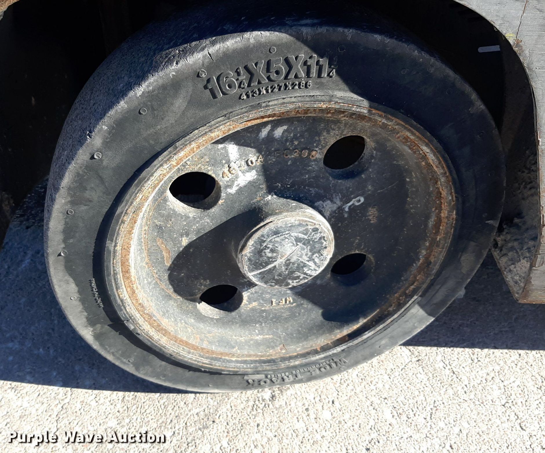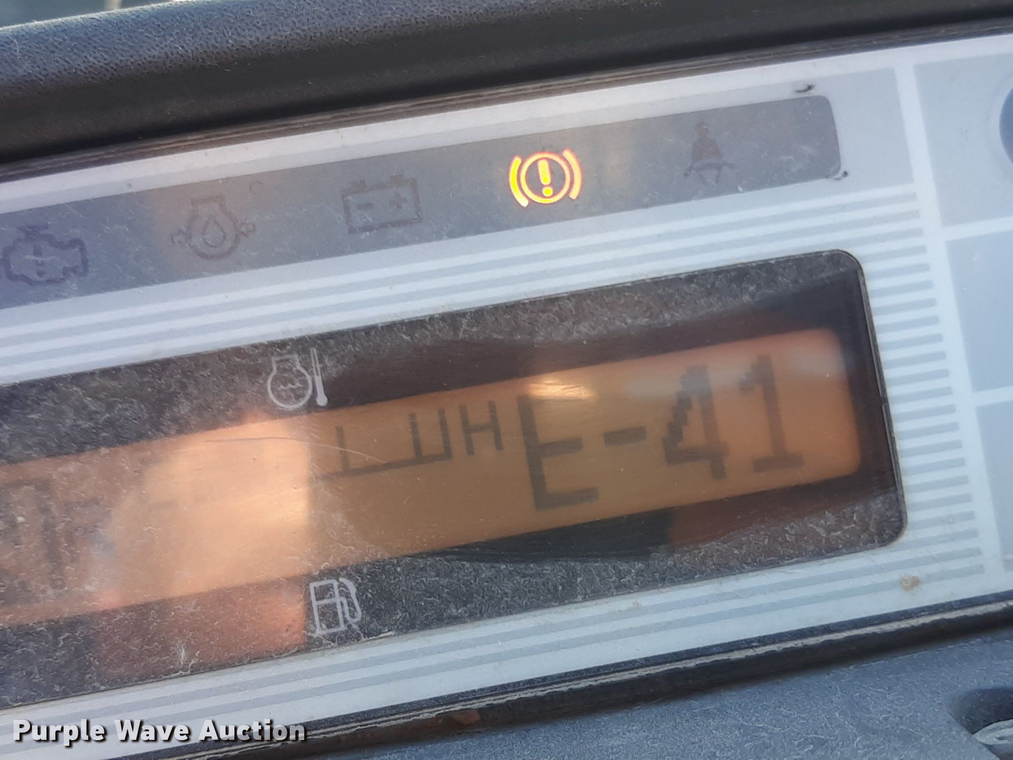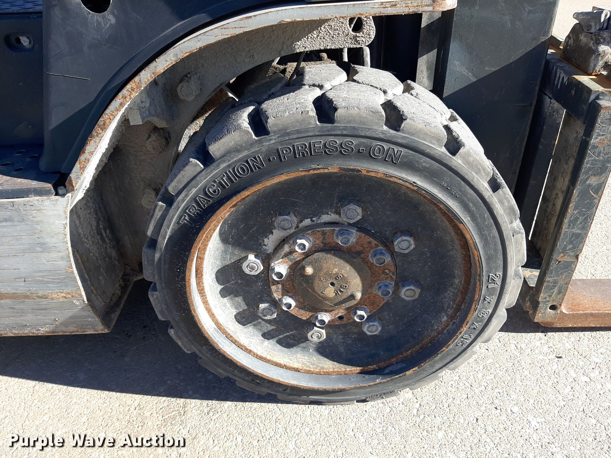 Nissan 50 forklift. Hours: 23,089 on meter. Engine Cylinders: 4, Fuel type: Dual fuel. Transmission Powershift. Operators station OROPS. Features Maximum lift capacity: 5,000 lbs, Maximum lift height: 80", Mast stages: 2, Mast tilt, Fork length: 41". Tires Front: 21x8x15, Rear: 16x5x11, Solid. Notes Transmission issues. Higgins Group. 3919 South West Street. Wichita, KS 67217