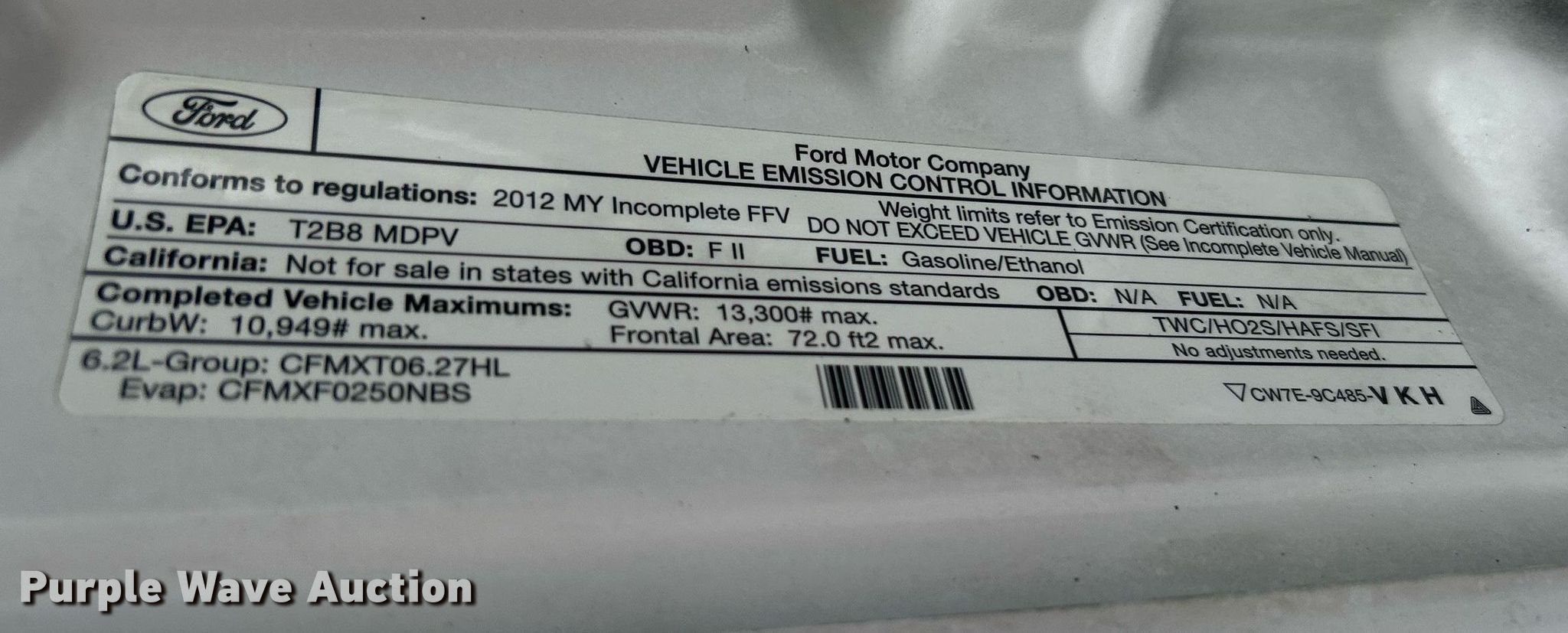 2012 Ford F350 XLT Super Duty SuperCab utility bed pickup truck. Miles: 305,306 on odometer, VIN: 1FD7X3B68CEC57195. Engine Displacement: 6.2L V8 OHV, Cylinders: 8, Fuel type: Gas. Transmission Automatic, Four wheel drive. Interior AC, Heat, Seat: Power driver, Heated mirrors, Power windows, Power locks, Cruise control. Features Utility bed Knapheide 696D38F62J-L, 8' L x 78" W. Tires Size: LT265/70R17. Notes Dash warning indicator: TPMS, Windshield chipped or cracked. Oklahoma title. Title distribution may be delayed up to 14 days from verification of funds. 15107 North 137th East Avenue. Collinsville, OK 74021
